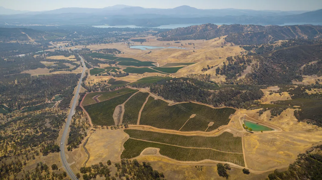 o 771.07 +/- gross assessed acres located in Lake County, comprised of 189.73 +/- planted vineyard acres, 160.27 +/- potential additional plantable acres, and 421.07 +/- acres of supporting land which includes well sites, a reservoir, booster pump stations, a filter station, equipment yards, paved/dirt roads, and rolling foothills.