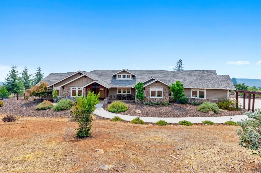Classic Craftsman Estate. You won't believe the exquisite quality of this gorgeous craftsman style single story home perched on 19+/-acres in a gated community. You'll lavish in spectacular valley views, enjoy the fruits from your trees and garden, share your private label olive oil from your orchard or even grow your own vineyard in Benridge Konocti Soil 112; which is thought to be the highest quality soil for growing cabernet grapes. Start planning your vineyard as the permits have already been approved. This home is in a prime location of Middletown and adorned with the most coveted amenities. Create fabulous meals using your Wolf appliances, entertain in your open concept living, dining and kitchen that spills out onto the massive covered patio and outdoor kitchen set among starry skies and strings of twinkle lights. Connect with nature as you walk among your orchard, picking up Lake...