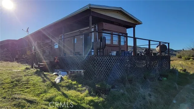 Great 20 Getaway in the outback of Morgan Valley near Lower Lake. Large Pond supplies irrigation water and is a wonderful place for recreation on warm summer days. Old home was replaced with a very comfortable manufactured home. Home has a surround deck and is protected from the environment by a second roof that was built to last. Electric power for home and submersible pump is supplied from solar systems. Submersible pump is able to deliver water to the highest area of the property. A spring has been the source of water for the home. Water from the spring is gravity fed to the home. Plenty of space for a big garden and animals. A second homesite currently has an older 5th wheel trailer with a surround deck (all in poor condition). Property borders Cache Creek Wilderness Area (BLM) which is part of the Lake Berryessa Snow Mountain National Monument. Enjoy 1000's of Acres of untouched wilderness.