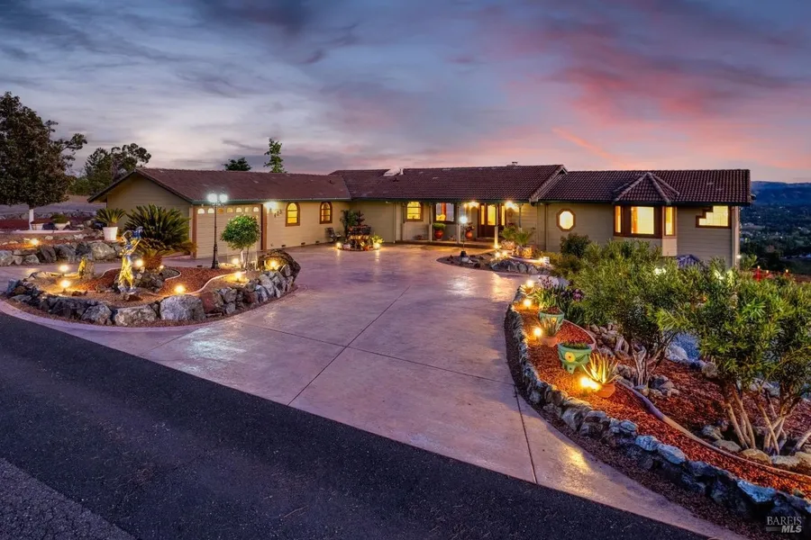 Shared Lake Access Option at Park approximately 1/2 mile near. Serenity Point Lakeview Home, North Lakeport close to town yet quiet & private, on 6 gently sloping acres. Panoramic views of lake & mountains offer a breathtaking spectacle. Wildlife abounds! Large 4,132 sf, custom home, 3BD, a Nursery, & an Office, 3BA, + 2 Partial Baths. Primary Suite approx. 25' x 16' flows into lavatory, double sinks with granite counters, wraparound glass shower plus walk-in closet. East wing has a second large & one smaller bedroom with gorgeous Jack & Jill bathroom with shower. Stunning views of Clear Lake, Mt. Konocti, Lakeport & Scotts Valley. Dining room hosts sculpted ceiling and is 13' x 14' with French doors to covered deck. Kitchen with Breakfast Nook is open to Family Room with cozy gas fireplace. Laundry has granite counter & Deep Stainless sink with storage galore. Central vacuum & Alarm Sys...