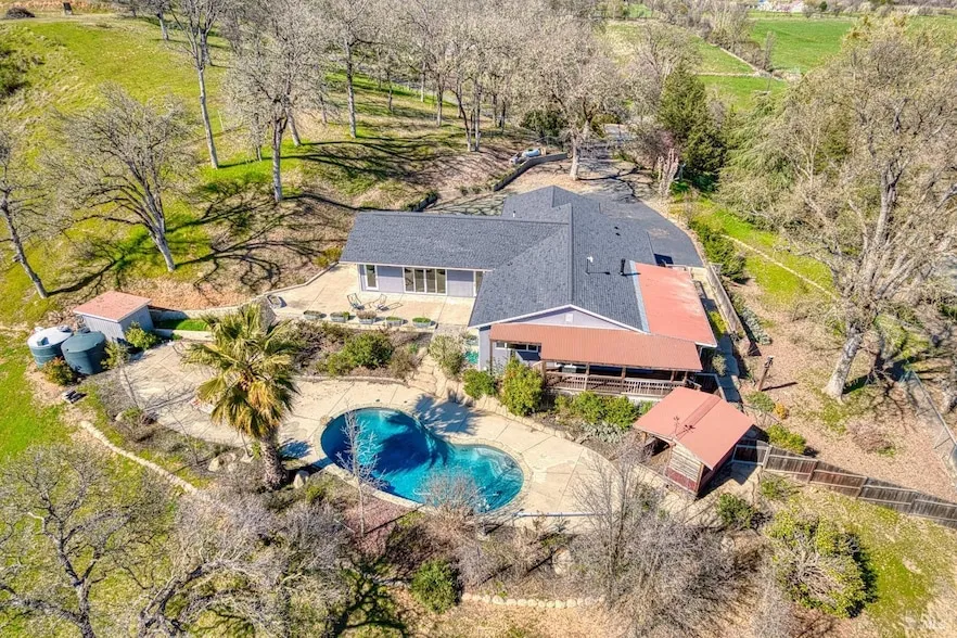 Escape to 6.5 acres of serene beauty in the coveted Scott's Valley area, blending rustic charm with modern luxury. Just minutes from downtown Lakeport, this remodeled single-story ranch-style home offers 3 bedrooms, 3 bathrooms, and an unmatched lifestyle of relaxation and sophistication. The private backyard is a true oasis, centered around a stunning 9-foot-deep gunite pool surrounded by lush tropical landscaping. Heated walkways lead to concrete patios, a storage outbuilding, and a covered patio that spans the length of the homeall perfect for entertaining and taking in breathtaking valley views. Inside, wide plank flooring, solid alder doors, and shiplap accents create a welcoming rustic vibe, while the reimagined kitchen boasts contemporary style and functionality. The master suite provides a luxurious retreat with pool access, a spa-like bathroom, and a spacious walk-in closet. Additional bedrooms include one with convenient poolside access, while two fully upgraded bathrooms feature granite countertops, tiled showers, and elegant alder cabinetry. Modern updates include new electrical panels, plumbing, dual-pane windows, and a freshly painted exterior. A state-of-the-art well system ensures sustainable water management.