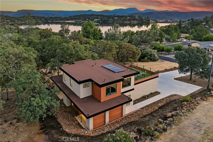 Modern Lakeview Retreat with Designer Finishes! Nestled on a peaceful .38-acre lot, this stunning 3-bedroom, 2.5-bath home offers a perfect blend of style, comfort, and functionality. Enjoy the soothing sounds of a seasonal creek, abundant wildlife, and even blackberry picking right in your own backyard. The exterior boasts a contemporary mix of stucco and siding with sleek metal trim, while covered entries and glass-railed decks set the tone for the home’s modern design.