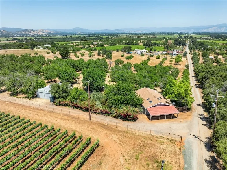 Homestead Haven with log home! This 7+/-acre property offers flat to gently rolling land with distant lake views. Log home has 2 spacious bedrooms, 2 baths, soaring ceilings, great room, breakfast bar, laundry room, covered rear deck. Fenced front yards, fenced rear yard. Ready for new owners, the home features fresh interior paint, new flooring, updated bathrooms, new windows, and a roof. Walnuts grow throughout the property. A large metal shop with dual roller doors, a cement floor and lift is ideal for auto enthusiasts. Gardeners will appreciate the 5000-gallon holding tank filled by a well, raised beds, and a shade house. The chicken coop awaits new birds. The perimeter fencing makes it perfect for horses or livestock. Opportunities abound!