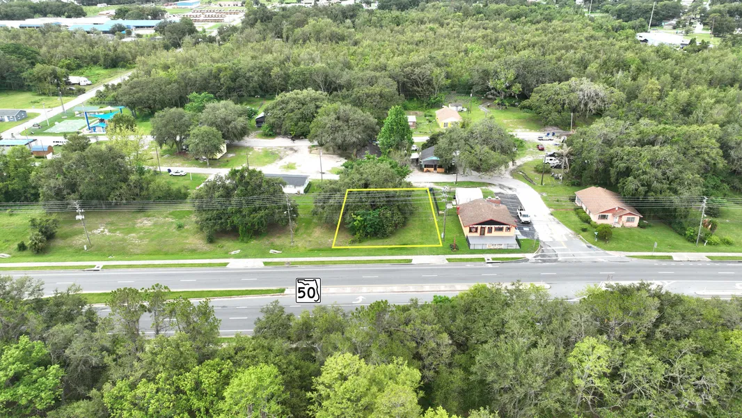 SR50 Commercial Lot in Groveland. This 65X85 parcel with 65 FT frontage on SR50 with a 33,500 DTC (traffic count), and zoned Town Center (allowed uses: Townhome, Live-Work, residential short-term rentals (less than 180 days), resort, retail, clinic, office, or sfr. Setbacks are 10 front and rear, no side setback and a maximum height of 40 with approximately 4, 225 SF buildable per-level with no parking.