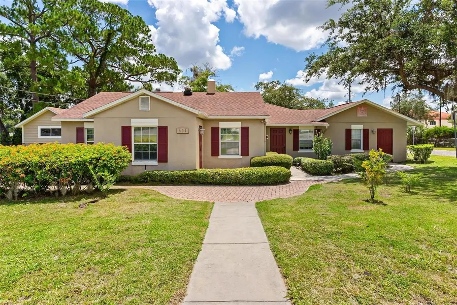 Multi functional 2440 sq. ft. commercial office building/apartment zoned MU in the heart of Tavares. Located on main thoroughfare with great visibility. This property features a large tiled lobby with vaulted wood ceilings and skylights. Two tiled glassed reception area's with private entry & exit. Three full tiled offices of which one has a file room and private entry & exit. Large conference room with 2 interior entrances and a private entry & exit. Breakroom/kitchen, full tiled bath with shower and 1/2 bath. This space is perfect for one business or multiple business. There is also an attached 2 bedroom 1 bath apartment with private entrance. Complete with a full kitchen that opens to a living area with vaulted ceilings and skylight. Full tiled bath w/walk in shower, laundry area, loft and outside parking. Outside is a 16x15 storage building with side entry door and front sliding door. Brick paver parking area with handicap area. Also has alley access at rear of property. Nicely landscaped corner property with 100 ft on N Sinclair Ave. and 130 ft on E Esther Street. Located with in minutes to all the Lake County Government build1ings and the famous America's Seaplane City where there is dining, shopping and weekend events. A great location for your busines and golf cart accessible.