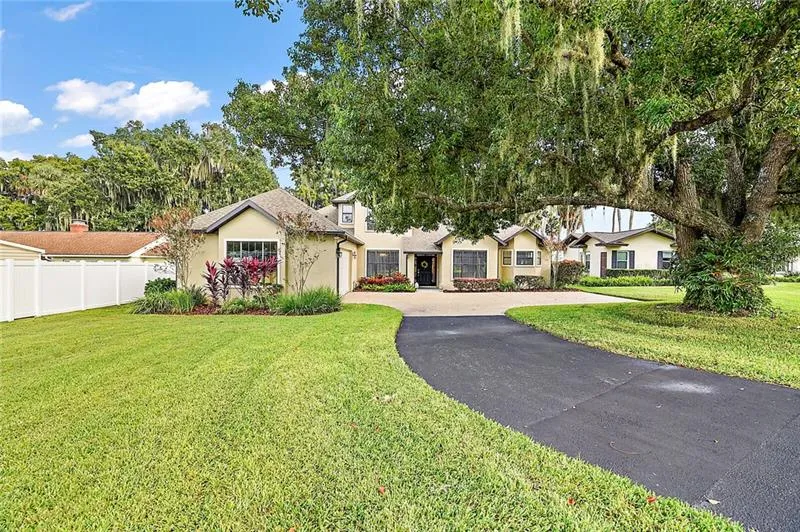 HELLO SUNSHINE WAKE UP ON LAKE HARRIS TO AMAZING SUNRISES- This two story home is full of Pizazz and is located on the western shore of LAKE HARRIS ON THE CHAIN OF LAKES with COVERED BOAT DOCK AND ELECTRIC BOAT COVER. Drop your boat from the lift and take off for a day of fishing, cruising or water skiing. The lot is elevated with over 80 feet of Lake Frontage and offers stunning views of Lake Harris. The outdoor space at this home is like being on vacation with a screened pool and spa - paver pool deck, covered lanai with TV hook up and an open patio that has a boardwalk down to the dock. You can enjoy your coffee while watching the breath taking sunrises. The interior Living area is over 3000 SF & includes 3 bedrooms plus an office and 2 & 1/2 baths. Upon entering the home through the foyer you are greeted by a beautiful view of the lake. The main floor includes the master suite featur...