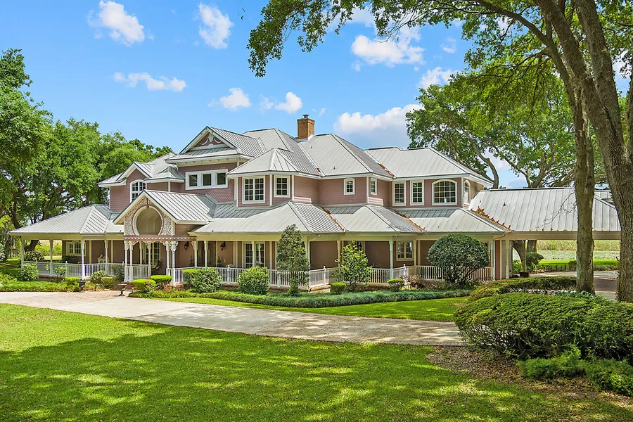 Lakefront on Johns Lake and over 11 acres total, including two homes and a detached, almost 1200-square-foot cabana complete with a bedroom, bath, kitchenette and game room/living room overlooking the lake. The main home is over 6,700 square feet and the guest house is over 1,400 square feet complete with one bedroom, two baths and a full kitchen. Total of over 9,300 square feet of air-conditioned space on this property. The circular drive leads you to the home with over 110 feet of rocking chair front porch space. The foyer features 27-foot ceilings with views through to the lake from the front door located just past the curved staircase. The massive kitchen has granite countertops, custom cabinetry, additional island space and a walk-through butler's pantry. Formal dining room with space for a massive table. The formal living room has celestial ceilings and windows overlooking the pool and lake. The family room off the kitchen has 23-foot ceilings, a built-in entertainment center and French doors leading out to the pool deck. Looking for a massive master bedroom suite? Look no further. The double doors lead you into your own foyer space before entering the bedroom with wall-to-wall windows on the lakeside. In-room coffee station with sink and refrigerator leads you into one of three closets. 16x12 and 15x13 closets and a smaller storage room off the huge master bath. Master bath with walk-in shower, jetted tub, toilet, bidet, large vanity with dual sinks and desk area. Upstairs is a huge loft and remaining bedrooms and baths. The bonus room near the second staircase is perfect for storage but could also be used for a music room, playroom or offices. Access the upstairs balcony from one of the two bedrooms to experience the gorgeous sunrises. This beautiful, Victorian-style custom home was made with love and the best materials. The trim work is fabulous from the built-ins and moldings to the decorative accents. Outdoor living is a must. Huge pool, separate spa, full summer kitchen, covered dining areas and patios off the cabana building. Use the spiral staircase to get to the second level for watching the Disney fireworks when they start back. The driveway leads you to a porte-cochere to the detached oversized three-car garage. The guest house has one bedroom, a huge living room with a full kitchen and two full baths. Carport and storage area off the side and entirely covered front porch. Johns Lake is your playground with a boat dock and lift over the water for all the fishing, boating, waterskiing and wakeboarding you could want. Use the fire pit area on the white sand beach for evening gatherings. Tennis courts and the racquetball court are being updated for yet another activity. This is the ultimate in property, everything you need is here acreage, fabulous main home, guest home, mancave/party, building/cabana, waterfront and amazing views. Less than 5 minutes to restaurants and shopping and less than 40 minutes to the airport, all attractions in the Orlando/Central Florida area, but with such a secluded feel. There is so much to see here. Easy to make an appointment to come see this amazing opportunity that has just opened for you. Please see the interior/drone video then come on out.