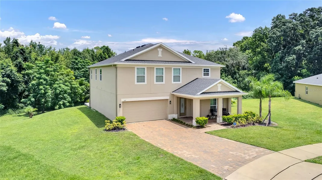 Pristine move in ready one of a kind!! This home is located in a gated community sitting in cul-de-sac with one of largest lots that back up to conservation and total privacy. Built in 2018, 10 year limited structural builder warranty, and only floor plan with a front porch with tons of windows and full of sunshine. Entering this home you are greeted with a formal living/dining room combo, gourmet kitchen with wrap around breakfast bar and breakfast nook that opens to Family Room. The main floor has a private office and 1/2 bathroom. The entire downstairs has carpet and ceramic tile in all wet areas. Upstairs has 3 bedrooms with French door closets and laminate wood flooring. The huge owners retreat has carpet with a sitting room that can be used for an office, gym, nursery etc. and includes a closet. When you walk in the master bath there's double vanity sinks, jetted garden tub with glass shower. There's a water closet with linen closet and separate walk in closet. Upstairs has an open sunny bonus room that is large enough for a pool table, media room, gym, movie seating etc. The laundry room is conveniently located upstairs and includes plumbing for a sink. The guest bathroom has double vanity sinks with a linen closet. Storage is not a problem in this home! Upgrades throughout include recessed lighting which includes the front porch, 42' cabinets with crown molding, granite counters in kitchen and garage entry, pergo accent walls in family room and custom built dry bar. The entire home has LED lighting; and motion flood lights in the rear of the home. Custom wooded 4 shelves added to garage. Home is more than 50% smart home from the door locks, garage door and upgraded air filters that sync with your phone. Home comes with upgraded ADT security system valued over $3,000 that stays with the home. In 2021 owners added gutters, screened in the lanai, and a custom paver patio that is 560 sq ft with a step down fire pit. Contact the listing agent to view. This home will not last long!