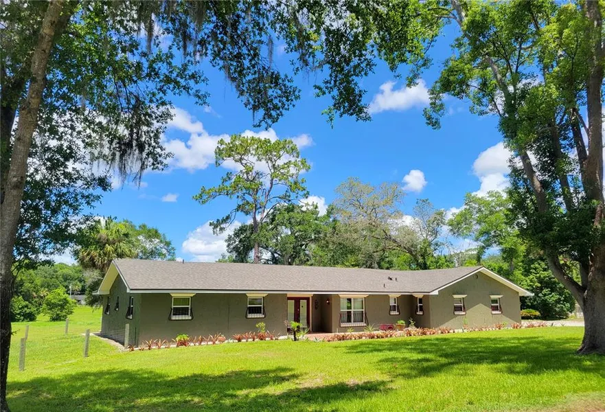 Quiet Country Living with a reduced price and motivated sellers! Nestled on a .8 acre corner lot, this 3 bedroom, 2-1/2 bath house in a golf cart community with plenty of trees and NO HOA, is a rare find! The home has a large family room with fireplace, living/dining space, breakfast area with the kitchen, and a large 40' rear screened porch. Custom cabinetry can be found throughout the house and the kitchen has new stainless LG appliances and granite counter tops. The master bedroom, living room and family room, all open to the screened porch with sliding doors. The porch over looks the above ground decked pool and a sprawling view of rolling hills. Each side yard is separately fenced in for pets and they have access to the porch via pet doors. The roof was replaced in October 2021. In addition to the 2 car garage, there is a 20 x 12 storage shed with an attached greenhouse. The interior fireplace is two sided with the other opening on the exterior of the house. The neighborhood is minutes from 46 and the 429.
