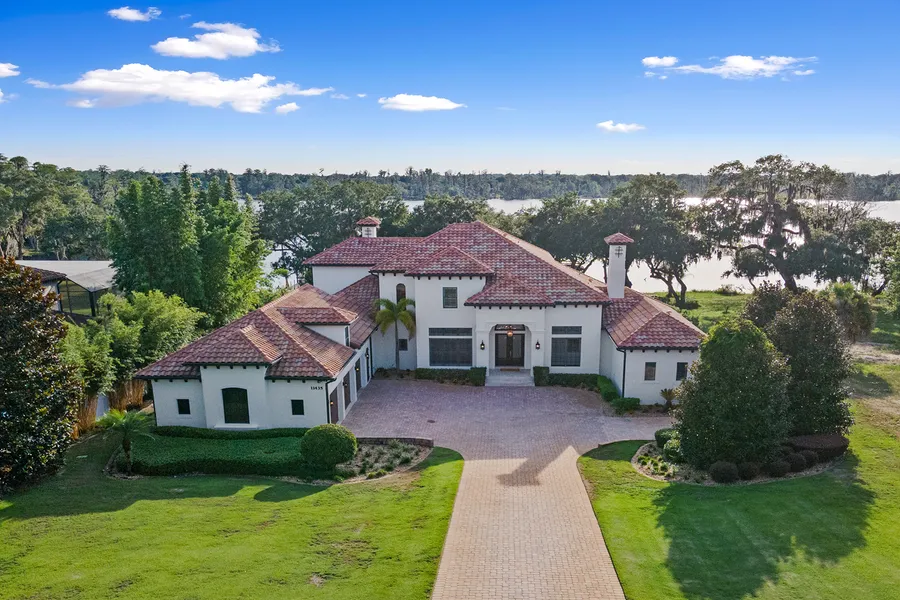 Exquisite custom home directly on the Clermont Chain of Lakes with spectacular and brilliant Florida sunsets. Live vacation life every day on the lakes, in the pool, or enjoy all this home has to offer inside and out. Expertly laid out design with the master suite, family and formal rooms on the main level, additional bedrooms and family areas upstairs and an amazing lower level with secondary master suite, kitchen, game room and family room areas for the ultimate in entertaining. Arrive at the home through the electric gates and down the paver driveway to the front entry where you are greeted by massive custom front doors leading you into this masterpiece. Your eyes are drawn through the wall of windows out onto the diamond shimmering lake. The formal living room is one vantage point in this house with those incredible views. Sliding glass doors from the family room lead you out onto the wide, covered balcony overlooking the massive pool, spa, dock and lake. The gorgeous kitchen has tons of granite countertops, custom cabinetry, top-of-the-line appliances and a breakfast nook with seamless windows is afforded the same views. The luxurious master suite is on this main level, has a phenomenal walk-in closet and huge bath. A dedicated office with classic cabinetry and shelving is ready for you to get back to work, and what a great location in sunny Central Florida to do so! One set of stairs off the butler's pantry area leads you up into a 27-by-13-foot bonus room with half bath, perfect for a home theater, studio or additional office space. The other staircase leads you up to three additional bedrooms (two en suite and one with a bath shared with the second family/game room). Down to the lower level, there is a fully equipped kitchen with range, dishwasher, refrigerator, a full bar with raised countertops, a dining room, living room, family room and secondary master suite, all with views of the pool and lake, accessible through the sliding glass doors. Entertaining for dozens of people is entirely possible in this area alone. Parties of 100 would not be difficult! Want more peace? Relax by the pool - sit in chairs with your feet in the water, move to the spa or float in the beautiful water. In the evening, the pool and outdoor lighting transforms into a resort feeling under the stars. The summer kitchen is fully equipped with a refrigerator, grill and sink. Follow the pavers to the fire pit under the gorgeous old oaks framing the rear of the home. Meander to the dock, fish from the deck or ascend to the second level of the dock for optimal views of those famous sunsets. Jump on a boat, kayak or canoe and explore all that Clermont has to offer. Take an adventure down the crooked river to Lake Louisa and stop by the state park or take the boat to Lake Minneola where you can grab a beverage or meal at the tiki bar or downtown Clermont with all the revitalized areas here and coming! This is truly an incredible home with almost 7,500 square feet of living area, oversized three-car garage, tiled roof and everything that comes under it! Please see the interior/drone video and make your appointment today for your forever home!