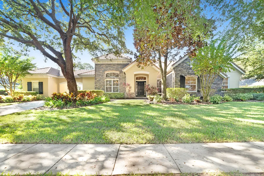 Welcome home to the prestigious RedTail Golf and Country Club gated community of Heathrow Country Estates. RedTail is country club living amongst beautiful rolling hills in a gated community with gate attendants. As you enter the community, you will enjoy a covered bridge and magnificent tree lined streets. This beautiful pool home has 3 large bedrooms, each with an en-suite bath, and an additional bath, formal dining doom, family room, flex room and study/den. The flex room or study/den could easily be turned into a 4th bedroom. The home features extensive crown molding in all rooms, hardwood flooring (master suite, flex room, family & dining room) and windows that allow a ton of natural light throughout. The gourmet kitchen features custom wood cabinetry, stainless steel appliances (stove is plumbed for gas), motion sense touchless faucet, an island, a walk in pantry with extra storage shelves, and an eat-in breakfast area. The laundry room is adjacent to the kitchen and includes a deep basin sink and cabinets for additional storage. The kitchen and breakfast area all overlook the spacious family room that features a tile-surround wood fireplace, and custom bult-ins with a beautiful view of the pool. The master suite has wood floors, tray ceilings, crown molding and a huge walk-in closet measuring 17 feet by 7 feet. The master en suite includes a walk-in shower, granite countertops, jetted garden tub and plantation shutters. The 2nd and 3rd bedrooms each have new carpet, their own en-suite bathroom, extra shelving in closet, and ceiling fans. The flex room is conveniently located near the spare bedrooms and could be used as a playroom or second office. The study/den features glass French doors and is located at the front of the home along with the formal dining room and includes wood floors and crown molding. Enjoy outdoor Florida living at its best as you relax and unwind on the large covered extended screened-enclosed lanai or in the sparkling saltwater pool with sundeck & water feature. The home sits on a stunning lot with outstanding curb appeal, large backyard with an aluminum puppy picket fence, a porte cache with courtyard and an oversized 3-car garage. Updates include new carpet in guest bedrooms (2022), new dishwasher (2022), 2 new HVAC with smart thermostat (2020 & 2021), new cook top (2019), new built-in oven (2019), new water heater elements (2019), new hardwood floors (2016), and new tile fireplace surround (2016). RedTail amenities include a championship golf course, full-service country club with restaurant & bar, community pool, state-of-the-art fitness center & yoga studio, and 2 Har-Tru tennis courts. Fantastic location just 2 miles from the 429-extension with quick access to Orlando, Central Florida theme parks, and Orlando International Airport. Just minutes to historic Mount Dora for all the quaint shops and restaurants.