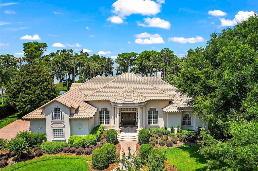MAGNIFICENT LAKE HARRIS/CHAIN OF LAKES 4 BR CUSTOM ESTATE POOL HOME WITH BOAT HOUSE ON 1 ACRE IN PRIVATE GATED COMMUNITY. The Peninsula is a sought-after, exclusive Tavares enclave of a mere 17 parcels with luxury estate custom homes on oversized lots graced with moss-laden oaks and prime Lake Harris frontage. Welcome home to your tranquil, idyllic paradise. This exquisite 4,309 SF home offers superb craftsmanship and attention to every detail. The grand architecture, complete with cast stone details, tile roof, soffit corbels, regal columns, and covered front entry, is further enhanced by the lush, manicured lawn with mature landscaping. A custom paver, circular driveway, and side-entry drive to a 3-car garage provide convenient parking. 8 Ft. solid wood front doors open into a palatial interior with soaring 17 Ft. custom-trimmed tray ceilings, wide crown molding and baseboards, custom-fit Plantation shutters, Travertine floors, artist murals and paint finishes, cast stone columns and fireplaces, locally crafted ironwork details, and lighted art niches. Upon entry, the front living room offers breathtaking, panoramic Lake Harris views, including brilliant sunset views! The living room has an exquisite stone gas fireplace and telescoping glass doors to the pool lanai. Adjacent is a formal dining room perfect for hosting family and friend gatherings and holiday celebrations. The kitchen offers an abundance of custom wood cabinetry, granite counters, and commercial-grade appliances, including a gas range, custom-designed hood vent, island with storage and prep sink, pass-thru window to lanai, and amazing Butler's pantry with sink and wine refrigerator. The adjacent family room houses the whole-house surround sound system, and the room includes a dining alcove, gas fireplace, built-ins, huge windows with lake views, and a glass slider to the lanai. A well-appointed study with built-ins and a desk is ideal for an office or cozy library. The carpeted master retreat is expansive with a 2-sided gas fireplace to the lanai, lake views/access, work-out area, wet bar, and spa-worthy en-suite with dual granite sink vanities, dual walk-in closets, jetted soaking tub, and doorless walk-in shower with multiple sprayer jets. 2 guest Bedrooms share a Jack and Jill bath and a convenient desk/work-station in the hallway; ideal for bill paying or a homework area. A half guest bath provides pool access, and the impressive, custom iron stair railing leads to the upstairs BR/bonus room. This spacious, carpeted room includes a walk-in closet and a beautiful full bathroom with a Travertine shower. It's perfect for extended guests or as a private media room. The outdoor living areas are as impressive as indoors! A fully screened lanai offers unparalleled panoramic lake views. The covered areas include a wet bar and abundant space for luxury dining and entertaining by the fireplace. The mosaic Travertine/granite floor steps down to the paver pool deck with a sparkling pool and jetted spa. A lighted paver path leads to the covered boathouse with upgraded metal, electric boat hoist. Enjoy 161 Ft. of Lake Harris frontage and Chain of Lakes access. Mission Inn is a few minutes away, offering fine dining, golf, and tennis. This property is the finest in lakefront living!