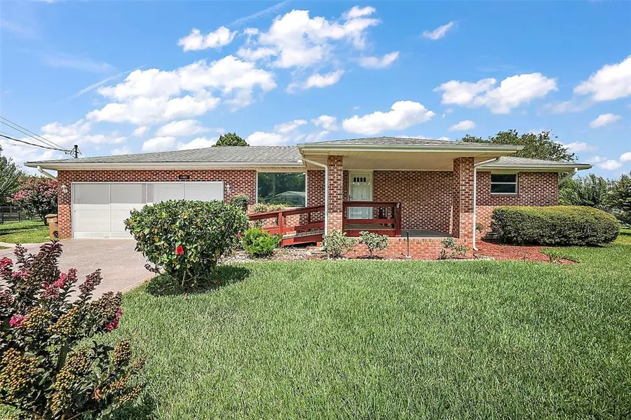 DIRECT WATERFRONT AND BOATHOUSE! ADORABLE 2 BR TAVARES COTTAGE ON CANAL WITH DIRECT ACCESS TO HARRIS CHAIN OF LAKES! Welcome home to this well-established community with quiet tree-lined streets and desirable canal frontage/lake access lots so you can enjoy the Florida lifestyle to the fullest. Imagine fishing, boating, skiing, paddle boarding, and more! Arrive home to this end of the cul-de-sac property and be captivated by its charm. You will love the lush, tidy half-acre lawn, attractive brick facade, and covered front entry porch. There is currently a wheelchair-accessible ramp to the front door, but it can be removed. A spacious driveway and two-car garage with a convenient screen slider exist. Inside is a move-in ready interior, but cosmetic updates could make it a showstopper. The A/C system was replaced in June 2023. Neutral walls, carpet, and tile flow throughout. The front living room is spacious, with an oversized, front-facing window. The kitchen offers a nice dining area, abundant counter space, wood cabinetry, storage drawers, and a full-wall built-in hutch area. A full bathroom with a single sink and walk-in shower is off the kitchen. From the dining area, a glass slider welcomes you to the family room with wood laminate flooring, a cozy brick, wood-burning fireplace, and an access door to the enclosed Florida room with windows. The primary bedroom includes a walk-in closet. There's a cedar-lined closet in bedroom 2, and the second full bathroom is conveniently located near both bedrooms, and it offers a wheelchair-accessible shower and large sink vanity. There is a laundry room inside the garage which includes a utility sink. What a great house with tons of potential to make it your own. You'll love spending time in the Florida room, enjoying the panoramic backyard and canal views. Step into your backyard and walk over to the enclosed boathouse. The surprise is that half of it is a shed/workshop space! The boathouse has both water and electricity. The edge of the property has an aluminum seawall and a little fishing pier for you to relax while away on a lazy afternoon day. You are conveniently located within a quick drive to every amenity—shopping, dining, medical, and more! What a wonderful opportunity to make this waterfront home your slice of Florida paradise!