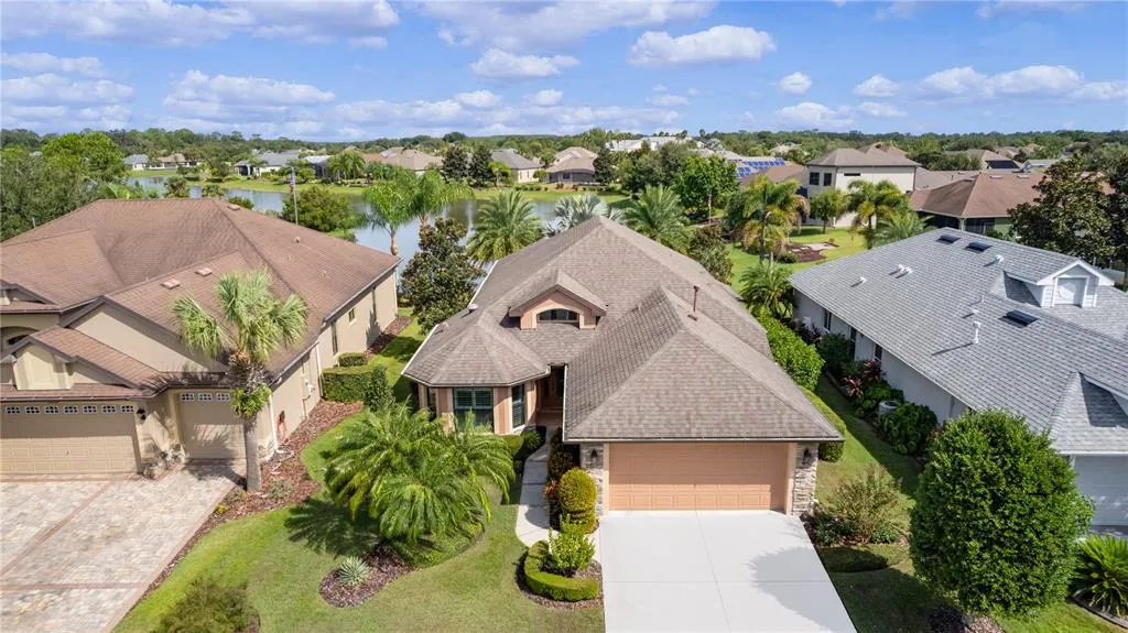 Carefully selected features can transform an ordinary home into an extraordinary one, and this home serves as a perfect example. Welcome to the Carlisle model, a 2 bedroom, 2 bath home boasting 1,717 sq ft interior space. A freshly painted exterior, meticulously maintained, intelligently designed and tastefully appointed, this home is ready, there is absolutely nothing to do but move in and enjoy. This home is equipped with several features that provide peace of mind. A natural gas-powered generator that automatically activates when the power goes out. This ensures that you'll never be left in the dark during unexpected power outages. A termite bond as well as an In-Wall Pest Defense System. This system consists of tubing in all exterior walls, allowing technicians to administer treatment into the walls. A whole house water filtration system. Created with an eye on excellence, the grand entrance opens to a spacious area where little impedes a view that extends seamlessly from the front door to the lush rear gardens and the breathtaking water views beyond. The floor plan is thoughtfully designed offering ample space for both relaxing and entertaining, the inviting and elegant living and dining area provide an open and welcoming atmosphere. Additionally, the den and home office, which was originally intended as a third bedroom, have been cleverly incorporated into the great room. This home's gourmet styled kitchen is a showstopper, every high-end element raises the standard far above builder-grade quality. Current trends are shifting away from the typical white and grey cabinet scheme, the gorgeous custom cabinetry in this kitchen is finished in Maple and is refreshing and very impressive. The upper cabinets are staggered and beautifully finished with crown molding. This well equipped kitchen features stainless appliances. granite surfaces, under cabinet lighting, multi-tiled backsplash, closet pantry, and a large eat in breakfast area. It's a space where functionality meets aesthetics, creating a kitchen that's both practical and visually stunning. In the primary bedroom, soft and soothing pale blue tones create a tranquil atmosphere, providing a peaceful beginning and end to each day. The ensuite bath has been meticulously designed, featuring a walk-in shower, sleek Corian countertops, and a custom vanity with convenient upper storage. The generously sized guest bedroom is conveniently situated next to the second full bath, essentially creating a private guest suite. Beyond the fold-away sliding glass doors, you'll find peace and serenity in the backyard gardens, a true idyllic retreat. The large screened lanai and outdoor living areas are wonderfully inviting with beautiful gardens, exotic palms, mature flowering landscaping and picturesque lake views. Wildlife enthusiasts, avid bird watchers, passionate photographers, and outdoor lovers alike will find themselves in their element. This pristine waterfront home is located within the coveted and award-winning gated community of Lakes of Mount Dora, a 55+ retirement community. The community features a huge lakefront clubhouse with a spectacular pool area, high tech computer room, great hall for large events, billiards and game room, and fitness center. Conveniently located just minutes from charming Historic downtown Mount Dora, and only 30 minutes away from all the attractions of the Orlando area. Ideal for anyone who desires a perfect home in a prime location at an affordable price!