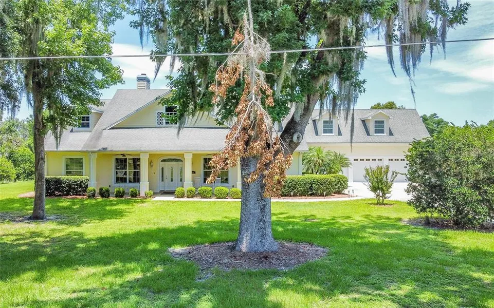 Welcome to your dream home! Nestled on over 2+ waterfront acres along the clear, pristine waters of the 90-acre spring-fed Lake Crescent, this custom-built, architect-designed masterpiece offers more than 5,000 square feet of luxurious living space. As you enter this stunning 4-bedroom, 3.5-bathroom concrete block/Hardee board two-story residence, you'll be greeted by the elegance of 10-foot ceilings and the grandeur of tray ceilings in the master bedroom and dining room. Crown molding, architectural arches, and columns grace the home throughout, complemented by the rich cherry flooring. The spacious den, featuring a wood and gas-burning fireplace with custom brick facing, invites cozy evenings with family and friends. The custom extra-large kitchen is a chef's delight, boasting a center island, cherry wood cabinets, brick tile, and a charming breakfast room. The screened back porch offers a complete summer kitchen with a gas cooktop, sink, fridge, garbage disposal, microwave, and Corian countertops—perfect for outdoor entertaining. Retreat to the expansive master suite, which includes two cedar-lined walk-in closets, a luxurious bathroom with a separate toilet, bidet, Jacuzzi bathtub, shower, and dual sinks. The additional bedrooms provide ample space and comfort. A unique bonus room upstairs, specifically designed for a home office, featuring a half bath, studio kitchen, fridge, wood cabinets, and four walk-in dormers/closets. This versatile space can also be transformed into a man cave, movie theater, or any other option you desire. This home is equipped with PGT insulated hurricane/storm windows, two A.C. units, two hot water heaters (one gas and one electric), an alarm system, and an irrigation system. The property also includes two all-steel barns and a two-bay pole barn with electric, water, and security lighting. The three-car heated/cooled garage with built-in shelving and worktops adds convenience and functionality. This secluded retreat provides the perfect balance of rural tranquility and accessibility to urban amenities. Spend your days boating, fishing, jet skiing, paddleboarding, kayaking, or simply soaking up the sun on Lake Crescent. End your day cooking in your summer kitchen and relaxing in your magnificent custom home. The owners have spared no expense in creating this extraordinary residence, with countless custom features. Come and experience the breathtaking lake views and spectacular sunsets—once you visit, you'll never want to leave. Welcome home!