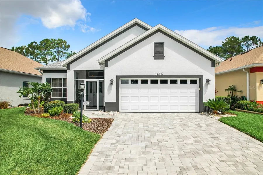 Welcome to your golfer's paradise at The Plantation at Leesburg! This charming 3-bedroom, 2-bath home spans 1843 sq. ft. and sits right on the 10th tee of the Cranes Roost golf course. As you approach, the manicured landscaping and brick paver driveway set the tone for elegance and comfort. Upon entering, you're greeted by an inviting open floor plan with engineered hardwood floors throughout and newer laminate flooring in the guest bedroom. The kitchen is a chef's dream, featuring Corian countertops, stainless-steel appliances, a breakfast bar, pantry, and ample cabinetry. The adjacent formal dining room offers views of the screened-in lanai, perfect for enjoying meals with a scenic backdrop. The spacious living room is bathed in natural light and enhanced by a ceiling fan, creating a cozy atmosphere. The primary bedroom boasts generous square footage and a large closet, Newer Paella windows, while the ensuite primary bath offers double sinks, a stand-up shower, and plenty of counter space. For flexibility, the second bedroom also features newer laminate flooring and a spacious closet, while the third bedroom can serve as a guest room, office, or craft space. The 2-car garage is equipped with built-in cabinetry, epoxy flooring, and a convenient side door entry. Outside, the screened-in lanai has been expanded to provide additional living space, complemented by a brick paver patio ideal for BBQs and outdoor seating. The entire home is well-maintained, with recent upgrades including a new roof, newer AC unit, hot water heater, and updated pavers. Beyond the home, The Plantation at Leesburg offers resort-style amenities such as two 18-hole golf courses, gated entry, three clubhouses, pools, exercise rooms, walking paths, and a golf cart-friendly community. Additional facilities include saunas, billiard rooms, tennis courts, shuffleboard, and even a baseball field. Social activities abound with clubs, classes, and events ranging from dance and exercise to sewing and card games. Whether you're drawn to the social scene or the tranquility of the grounds, this community caters to every lifestyle. Don't miss out on the opportunity to experience luxury resort living at its finest—schedule your tour today and envision yourself calling this welcoming home yours!