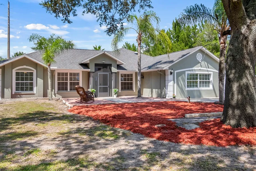 Welcome to your private home on 2.35 acres! This charming pool home features a flexible floor plan, starting with a welcoming driveway that leads to a beautiful house. As you enter, you'll be greeted by a great room with vaulted ceilings and captivating views of the backyard and pool area. This spacious room is perfect for a large sectional sofa and a big screen TV, making it ideal for relaxing or entertaining. The great room seamlessly connects to a fantastic Florida room through sliding glass doors, extending your living space for poolside gatherings or BBQs. The kitchen, conveniently flowing into the great room, allows you to stay engaged with guests while preparing meals. Adjacent to the kitchen, the dinette is adorned with a stunning light fixture and provides ample room for casual dining. For more formal occasions, there's a formal dining room at the front of the home with large windows that invite natural light. The laundry room is exceptionally spacious, featuring plenty of room for shelving and extra storage. The fourth bedroom, currently used as a music room and office, measures 20-by-14-feet and offers good closet space. The oversized primary suite includes a French door leading to the Florida room for easy pool access. Its bath is a retreat with a soaking tub, separate shower, and a large walk-in closet. The second bedroom, expanded for versatility, is perfect for an in-law setup with space for a bedroom suite and an additional living area or office. The remodeled second bath boasts a gorgeous shower with accent tiles and a sliding glass door. Enjoy the recently resurfaced and re-screened, well-maintained in-ground pool with new pool pump, ideal for floating and cooling off. Situated far off the road, this home offers privacy and has ample space for additional outbuildings or garages for car enthusiasts. Enjoy the gorgeous sunsets from the backyard and pool area, and since there are no close neighbors, it is a very private feel being fenced and behind the gated entrance. Less than two year old luxury vinyl plank or tile throughout most of the home (with new baseboards), washer and dryer, dishwasher, front screen enclosure at the entry, remodeled guest bath and hot water heater, plus new roof in 2017. Located just minutes from a shopping center and short drive to Orlando International Airport, Universal Studios, Disney, and other attractions, this home offers both tranquility and convenience. Check out the interior and drone video for a sneak peek, then schedule your appointment to experience this fantastic property in person!