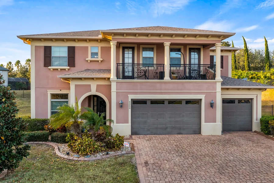 Stunning five-bedroom, 4.5-bath pool home with loft, bonus room and office in gated community. Welcome to this expansive and beautifully designed home, offering a blend of luxury and comfort. On a half-acre lot, this property features a huge pool and a spacious layout with five bedrooms, 4.5 baths, a loft, a bonus/media room, and a private office/den. The heart of this home is the gorgeous kitchen, which seamlessly opens to the large family room with surround sound speakers in the ceiling, ideal for entertaining. The kitchen boasts beautiful countertops, ample cabinetry, a gas cooktop, built-in double ovens and a microwave, all illuminated by pendant and recessed lighting. The formal dining room, just beyond the butler's pantry, offers plenty of space for family gatherings. Step outside through the two sets of sliding glass doors to the screened-in rear porch, where you can unwind or host barbecues by the large pool. With no rear neighbors, enjoy privacy and serene views. The primary bedroom suite is conveniently downstairs and features a huge walk-in closet and an expansive bath with dual vanities, a soaking tub and a separate shower. Upstairs, you'll find a loft ideal for a home office, study area or playroom. In addition, there's a bonus room ideal for a home theater or media room. The rear balcony overlooks the pool and offers the ideal space to enjoy morning coffee or evening drinks, while the front balcony offers stunning views of the rolling hills and even Disney fireworks in the distance. This home is in a gated community with a community pool, ideal for neighborhood events. Just minutes from shopping, restaurants, schools and major roadways, including easy access to the Orlando International Airport and the upcoming Olympus complex, this home offers the best of luxury and convenience. Don't miss the opportunity to view this incredible home. Please see the interior/drone video then make your appointment right away!