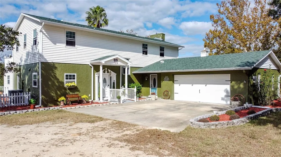 **Equine Oasis**Stunning Horse Ranch on SUGARLOAF MOUNTAIN***Truly unique property offers the perfect blend of Southern charm and modern upgrades. Gorgeous 2-story home, situated on 5+ pristine acres atop Sugarloaf Mountain, the highest point in Florida*rare opportunity for equine enthusiasts and those seeking a serene lifestyle.**Fully fenced and cross-fenced with non-climb horsefencing*Close to shopping, restaurants,, new hospital, and turnpike*Unique blend of Southern gentility with contemporary conveniences, nestled amidst rolling hills with breathtaking sunsets*5 bedrooms* ensuite on the ground floor and primary suite upstairs* Bathrooms: 3 (two fully renovated, one with new fixtures)*Whole house GERERATOR*500 gal PROPANE tank*New roof (2024)*Fresh interior and exterior paint*High tray ceilings, crown molding, and 5 baseboards*New 12mm water- resistant laminate flooring, travertine flagstone tile in wet areas*Upgraded exterior doors, luxury vinyl siding, dual pane insulated windows*New air conditioner with Wi-Fi thermostat*Upgraded stairs and railing* Gourmet Kitchen with center island*Viking induction cooktop,*double oven w/convection*dual sinks* 2-drawer dishwasher*Top-tier granite countertops*Extensivecabinetry with detailed scrollwork*Built-in coffee bar, mini-fridge, and bar-height counter seating*Travertine stone flooring*Refrigerator (2023), Microwave (2024)*Living & Dining:*Hand-carved wooden mantel with propane fireplace*Surround sound system*Recessed lighting and ceiling fans*Dining room features a luxury barn door leading to a 600 sq ft open space*Outdoor Living:*Expansive patio with two triple sliding doors bringing the outdoors in*Outdoor brick paver patio, garden beds, mature palmtrees*Wooden observation deck on the ground level and a full-length balcony on the second floor with sweeping views* Backyard fenced off for pets5-Stall Barn: Mid-way on the property, with an L-shaped design*Attached 2-car garage with loft*Fencing: Fenced and cross-fenced pastures, ideal for equine safety*Garage Space: Additional attached garage-type space with loft, perfect for equipment or storage This is truly a horse lover's dream, combining modern comforts with functional ranch features in an unbeatable location. With gorgeous views, updated amenities, and everything needed for equestrian care, this ranch on Sugarloaf Mountain is a rare find.