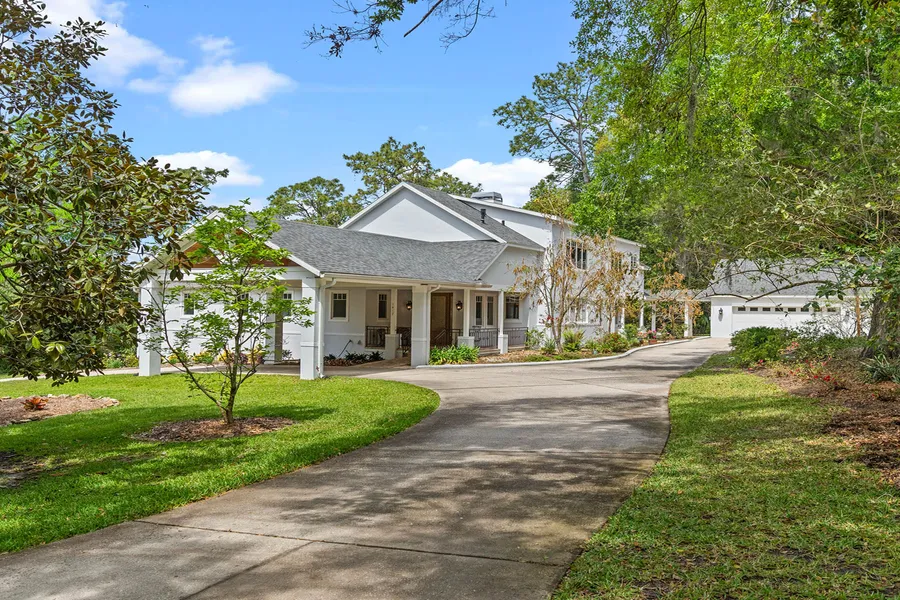 Elegant garden estate in Elysium, Mount Dora. Masterfully constructed by Keith Fields, this refined four-bedroom, four-bath residence spans 3,655 square feet and is gracefully sited on more than one acre in the esteemed community of Elysium. Designed with an emphasis on privacy, flow and connection to nature, the home invites effortless living with curated details throughout. The first-floor primary suite offers a tranquil retreat, featuring wood flooring, dual vanities, a walk-in shower and French doors that open to a covered porch overlooking sculpted gardens and twin waterfalls. Soaring ceilings and abundant Anderson windows fill the open living space with natural light, framing the gas fireplace and seamlessly linking the interior to its verdant surroundings. The kitchen is thoughtfully appointed with new Thermador appliances, including an induction cooktop, and flows into the dinett...