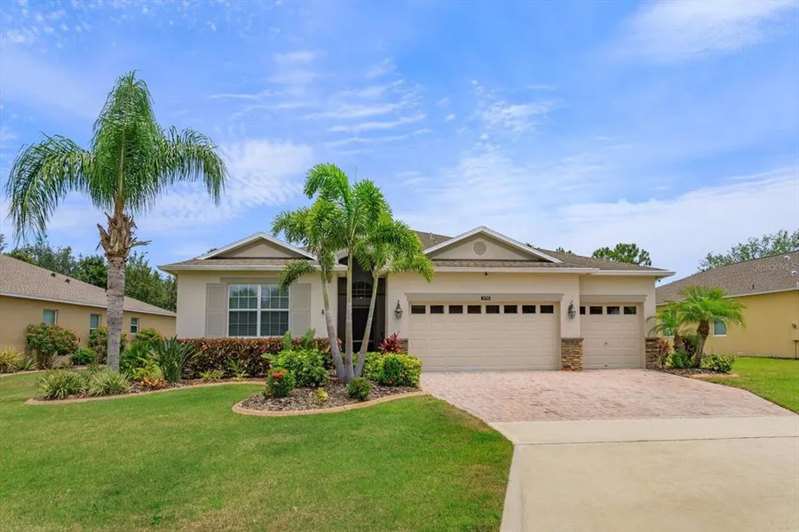 NO REAR NEIGHBORS with GORGEOUS LONG RANGE VIEWS and OUTSTANDING PROFESSIONAL LANDSCAPING!!! 55+ Living at its FINEST!!!! This beautiful Executive Home with a 3-way split bedroom plan and 3 bedrooms (possible 4th), 3 bathrooms, OPEN & SPACIOUS Floor plan with a 3 - CAR GARAGE is the perfect Florida Home. You will be impressed upon entering the Guard Gated Community by the beautiful landscaping, winding roads and elevated topography. The community Clubhouse is AMAZING with multiple SPORTS COURTS, OUTSTANDING POOL, FITNESS CENTER, CRAFT ROOM, BILLIARDS, CARD ROOM, AUDITORIUM and SO MUCH MORE. The home offers gorgeous WOOD FLOORS in main living areas, CROWN MOLDINGS, GOURMET KITCHEN, GRANITE Counter Tops, COFFEE/SPICE BAR, Center Island with Breakfast Bar. The oversized Family Room offers a triple sliding glass door with a direct connection to the Screen Patio with Pavers and beautiful views and landscaping. The oversized Master Bedroom offers a SPA-LIKE 5-PIECE Bathroom with a FRAMELESS GLASS SHOWER & MULTIPLE SPRAY-HEADS, GARDEN TUB, DOUBLE VANITIES & even a HEATER that warms you as you exit the shower. There are also two large WALK-IN CLOSETS with CUSTOM BUILT-IN CLOSET SYSTEMS. The oversized 3 car garage also offers an HVAC SYSTEM perfect for those using the garage for storage or a workshop. There are so many additional upgrades and additional features. Contact the Listing Broker today and schedule your appointment to see this beautiful property.
