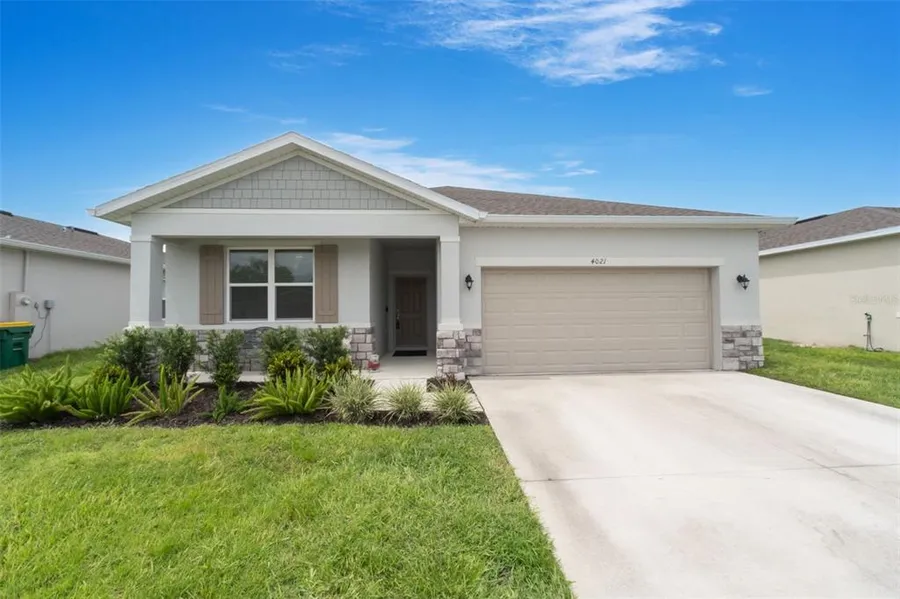 Welcome to this beautifully maintained 3-bedroom, 2-bath home in the desirable Mayhill community of Eustis-just minutes from Lake Eustis and charming Downtown Mount Dora. Built in 2022 by Stanley Martin Homes, this "Baker" floor plan was designed with efficiency, comfort, and style in mind. Since purchasing, the owners have added several valuable upgrades, including a vinyl privacy fence, full gutter system, ceiling fans in every room, and a screened-in back porch-perfect for enjoying Florida evenings year-round. Step inside through the covered front porch into a welcoming foyer, where you'll find two spacious bedrooms and a full bath with double vanity tucked neatly at the front of the home-ideal for guests or a home office. The heart of the home is the open-concept kitchen, living, and dining area. The kitchen features a large center island, stainless steel appliances, and plenty of cabinet space, all overlooking the bright and airy living space-perfect for entertaining or everyday living. The private primary suite is located at the rear of the home and offers a large walk-in closet and en-suite bath with dual sink vanity. Step outside to your newly screened-in porch and fully fenced backyard-ideal for pets, play, or relaxing in peace. Located in a growing community surrounded by nature, yet close to shopping, dining, and weekend markets in Eustis and Mount Dora, this home offers the best of both convenience and quiet living. Don't miss your chance to own a nearly new home with custom upgrades-schedule your showing today!