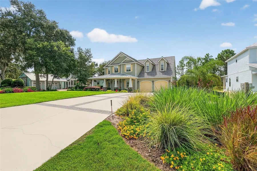 EXQUISITE 5 BR CUSTOM ESTATE POOL HOME ON 1.7 ACRES IN GATED BLUE SPRING RESERVE. Welcome home to this prestigious gated community located on a 300-acre nature preserve. Immerse yourself in the tranquility and natural beauty found here with ancient trees, birds, wildlife, trails, wetlands, and waterways. A true nature lover’s paradise! And yet, the Turnpike is within a mile, allowing for quick access to Orlando International Airport, Disney, and every desired amenity. At the end of a busy day, retreat home to your sanctuary to be greeted with captivating curb appeal. The classic architecture of this home is timeless, featuring an appealing gabled roofline and cedar shake details, a deep, welcoming front porch, shuttered windows, carriage-style garage doors, and a lush lawn adorned with vibrant landscaping. An expansive driveway, along with the oversized two and 1/2-car garage, provides a...