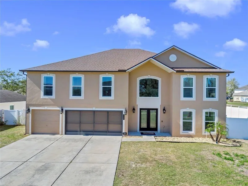 Step through the grand Pro Fiberglass double doors into this luxurious two-story home featuring six spacious bedrooms and four and a half bathrooms, including two master suites with private baths. Inside, you’ll be greeted by elegant vinyl wood flooring throughout the main living areas. The first floor boasts a modern kitchen with a hands-free faucet, Samsung appliances, including a smart fridge, smart washer, and dryer—all under warranty. Relax in the expansive living room, designed to comfortably fit the entire family, or gather in the spacious dining area perfect for hosting. Your first master bedroom is conveniently located on this floor for easy access. Upstairs, walk on real wood flooring as you enter a massive loft, the size of a master bedroom, offering endless possibilities. You’ll find: • One bedroom with a shared bath • Another bedroom with its own private bath, enhanced by a stylish barn-style closing door • A third bedroom as large as a master, overlooking the backyard and pool • A forth bedroom versatile office or small kids’ room • And finally, the grand master suite, which extends over the two-car garage and includes its own private office space Overlooking your home from the second floor, a stunning chandelier illuminates the space, visible through premium Pella windows on and doors from Florida, designed for sun protection and leak resistance on every window of the house—still under warranty. The master bath is a sanctuary, featuring his and hers full-size walk-in closets, a marble bathtub, a stand-up glass shower with dual faucets, and ample storage. Step outside to your private backyard oasis, where a fully screened in-ground pool awaits, all within a fenced-in .28-acre lot—offering both privacy and security. Gym or office space in garage. Security cameras on every angle of house. This home is the perfect blend of luxury, comfort, and modern convenience. Don’t miss your chance to make it yours!