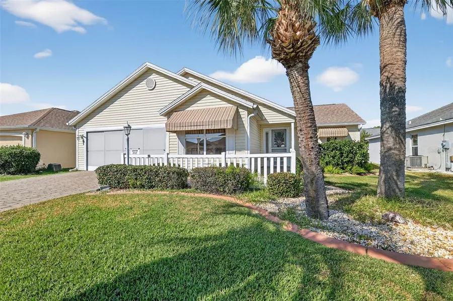 A CHARMING 2/2 THAT LIVES LIKE A STORYBOOK RETREAT, featuring three inviting lanais and a beautiful garden walk framed by lush, private shrubbery. Inside, brand-new vinyl wood flooring runs throughout-no carpet. Perfectly positioned between Spanish Springs and Sumter Landing, with golf cart access to a nearby championship course and three executive courses. Convenient to top-tier shopping and the hospital. Major systems have been updated, including the Roof in 2020, A/C in 2020, and Water Heater in 2009. An exceptional home in a warm, welcoming neighborhood. A MUST SEE!