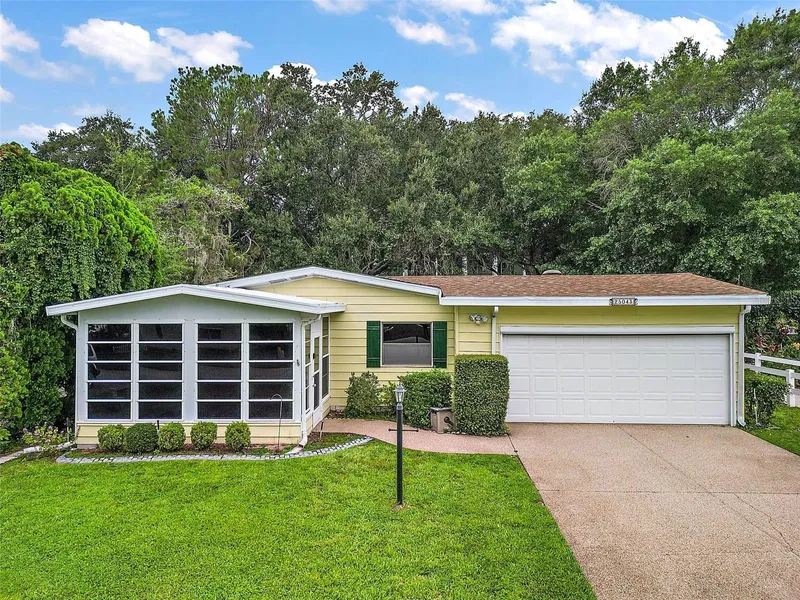 MOVE-IN READY.. Location, Location, Location.. This 2 bedroom, 2 bathroom Manufactured home located in the desirable 55+ Plantation at Leesburg is ready for its new owners. Conveniently located CLOSE TO THE FRONT GATE, the drive time out of the neighborhood is just a few minutes, while also being just steps away from the club house and several of the amenities that the neighborhood has to offer. There are no rear neighbors as this home provides the rare opportunity to be just steps from the club house! This home has had several upgrades made recently including a FRESH COAT OF PAINT THROUGHOUT THE HOME 2025, NEW ROOF OCTOBER 2023, NEW HVAC 2022, NEW WATER HEATER 2022, NEW KITCHEN APPLIANCES 2024 and NEW LUXURY VINYL PLANK FLOORING installed 2024 throughout the main living area of the home. Driving up to the home you will be pleased by the long driveway, and well maintained yard. Entering the property, you are greeted by the 10X14 Florida Room perfect for a sitting room, TV room, or the perfect space for all of your indoor plants. The living/ dining room combination provides plenty of space for family gatherings and has natural sunlight beaming in throughout the day. The dining room features a built-in with lighting to display your favorite trinkets and formal dining pieces. The kitchen features brand new appliances, cream colored cabinetry, and an eat-in space to enjoy your meals. The laundry room is located in the hallway off the kitchen, which leads to the garage featuring an electronic remote controlled privacy screen, overhead storage, a storage closet, a pegboard workshop area, room to park your car/ golf cart, and a door which leads to the enormous back patio ready for your back yard dreams to come true. The back patio is perfect for potted plants, a grilling area, and some outdoor furniture so you enjoy the back yard year round. Walking back into the home down the main hallway you will find the owners suite with a walk in closet, en-suite bathroom with a garden tub, and built-ins for all of your storage needs. The guest bedroom is large enough to double as a hobby room, man cave, or anything that your heart desires, and has a large closet for additional storage, if needed. Remember you are just STEPS from the club house, a pool, and several outdoor sports - it doesn't get better than this! The Plantation at Leesburg is an active 55+ community with several amenities including 3 club houses, three swimming pools, two 18-hole golf courses, lighted tennis courts, world class fitness centers, men's & women's wet and dry saunas in the fitness center, pickle ball, bocce ball, shuffleboard, softball/ baseball field, horseshoes, beautiful lakes, great fishing, drama clubs, computer clubs, broadway caliber shows, ballroom dancing, billiards, large swimming pools, crafts, full-time activity directors, and Plantation Oaks Restaurant. Call for your private showing today!