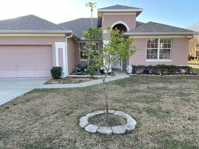An enclosed lanai is accessible from the family room, primary bedroom, and third bathroom. The fenced backyard adds privacy, while the laundry room and two-car garage are conveniently located off the kitchen.