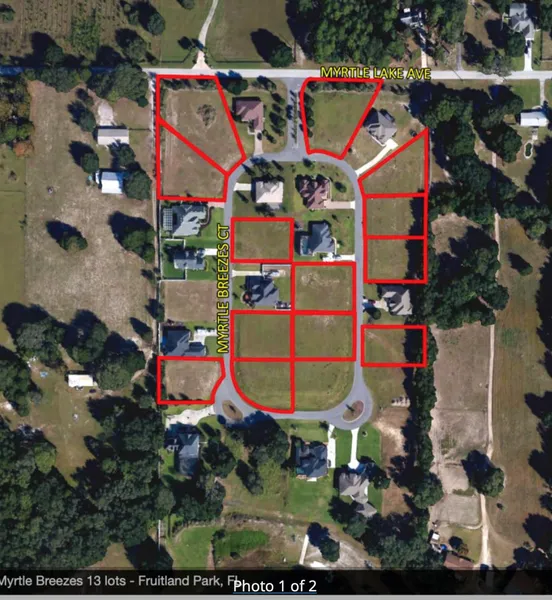 PROPERTY DESCRIPTION - Build your dream custom home in this quiet neighborhood of 32 luxury homesites in the heart of Fruitland Park. The brand-new elementary school is less than 1 mile from the site. The listing consists of 13 individual lots in an established neighborhood that fronts Lake Myrtle that could be purchased individually or multiple lots together. Approved builders only; subject to HOA Board's architectural review. Contact Broker for more details.