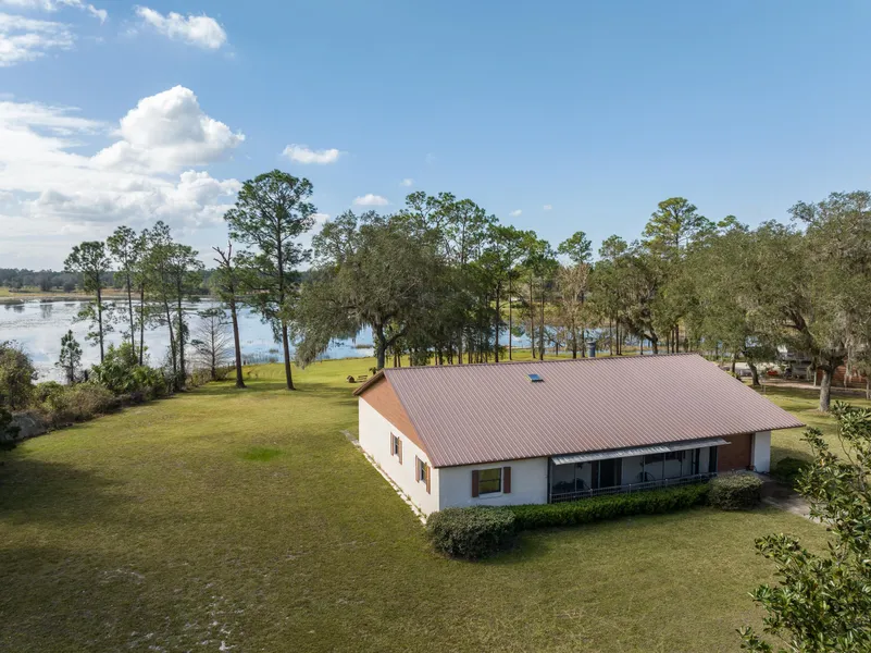 This 4+ acre one-owner fenced waterfront estate on a paved country road features a concrete-block home and a four-bay workshop that the seller has used for years as an auto-mechanic business. A new metal roof was installed in 2017 and the sunset views from the large Florida Room or 10 X 40 screened porch are amazing! The huge main living room includes a fireplace for those cool evenings and lakefront views are present here and the dining area as well. The kitchen includes all appliances and sits adjacent to the garage, making bringing in those groceries easy. The large Owners Suite offers a private entrance to the Florida Room and includes dual closets, and the lockable bath can be private or accessed via the main living area. The large Florida Room is under air conditioning and features an abundance of windows providing those amazing views and natural lighting. The 1,344 square foot permitted concrete block shop includes four bays, full electric and water hookup, an additional slab for parking, garage doors and everything you can imagine for the mechanic or project manager within you. The shop includes a wood-burning stove, but equipment does not convey. Public records suggest this is a three-bedroom home; however, the third bedroom currently does not have a closet and has been previously utilized as a craft room but would make for a wonderful office space as well. The washer and dryer as well as the ready-to-go hurricane shutters both stay with your new home! Want wildlife? Theres plenty of fishing here, but theres plenty of Whitetail Deer, Black Bear, Sandhill Cranes, Grey and Fox Squirrels, too! Located in the country, yet just 11 miles to Deland about halfway to Eustis, the Wekiva Parkway and the 429 are easy reaches, making the ride to Orlando a breeze! All measurements are approximate and should be independently verified.