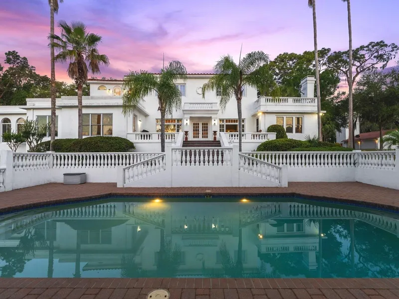 Come, step back into time to a magnificent waterfront Mediterranean estate that is perfectly positioned on 6 acres and 442 feet of direct frontage on pristine spring fed Lake Dalhousie where residents enjoy swimming, fishing, boating, water skiing and kayaking. A true retreat from the city life and one of the prettiest areas in Lake County. It enjoys the best of both worlds, uncrowded, peaceful country living, but close to shopping, major highways and the beaches. The grounds are enchanting but become sublime as you take in the spectacular early morning sunrise and golden hour that reflects on the home in a rich fairy tale glow. Stroll through the grounds where you will find stately grandfather oaks, bricked walkways, 1926 domed pavilion and emerald lush gardens all irrigated from the lake. You will notice the original 4-story water tower which, is no longer in use but stands tall captur...