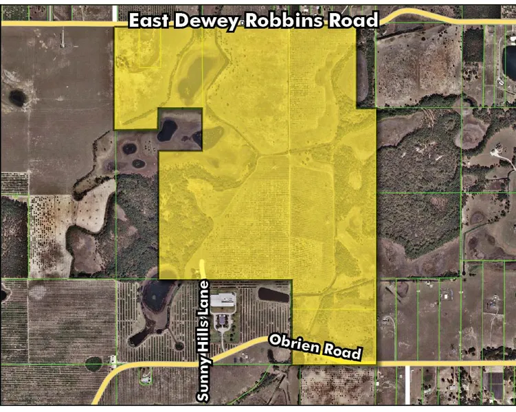 Road Frontage: 2,325 ft on East Dewey Robbins Road, 1,350 ft on OBrien Road.