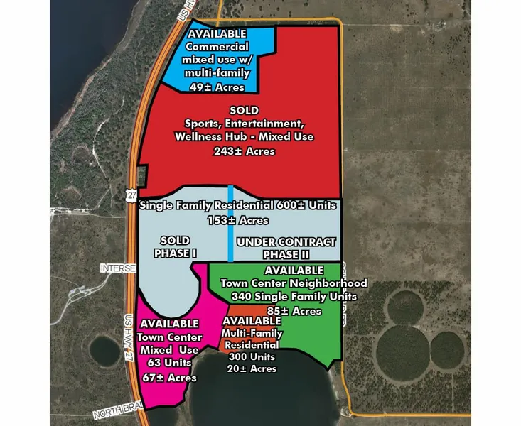 There has been massive activity on the property that will benefit the rest of the remaining parcels. At this time, we have closed on the Phase I of a 150+/- acre contract to Hanover Family Builders (Phase I closed end of December 2018, Phase II set to close in 2020). In addition to that, 243+/- acres have been sold to Olympus Sports & Entertainment on June 21st, 2019. This project is a major professional sports training, wellness and recreational facility. The addition of Olympus to this site will have enormous impacts on value and marketability of the remaining parcels. In addition, it is estimated that Olympus will create approximately 6,000 jobs and $1.4 billion in economic impacts to the region over a 10 year period. This facility will host amateur and professional athletes from around the world and will be broadcast ready. a mix of multifamily and townhome units, more than 1,000 hotel rooms, about 860,000 square feet of retail and office space, and nine sport and civic venues equipped for showcasing a variety of traditional and non-traditional sport matches like those seen within the emerging online video game esport industry.