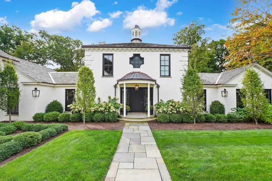 This stunning home, located east of Sheridan Road and mere blocks from Lake Michigan, is a completely renovated work of art by highly acclaimed designer, Megan Winters. Originally designed by renowned architect Jerome Cerny in 1962, this beauty rests on 1.85 acres of private land in east Lake Forest. Distinguished by design and defined by quality, this elegant home features cashmere wallpaper, striking light fixtures, and amazing sight lines. While maintaining the charm of the original exterior architecture, an entirely new living experience was created via a fully redesigned floor plan. Pops of color are visually stimulating throughout while fireplace focal points catch the eye. The kitchen is complete with black Viking appliances, an expansive island, leather pull details, large pantry spaces, and opens to the dynamic family room - truly a feast for the senses. The bedrooms are impecca...