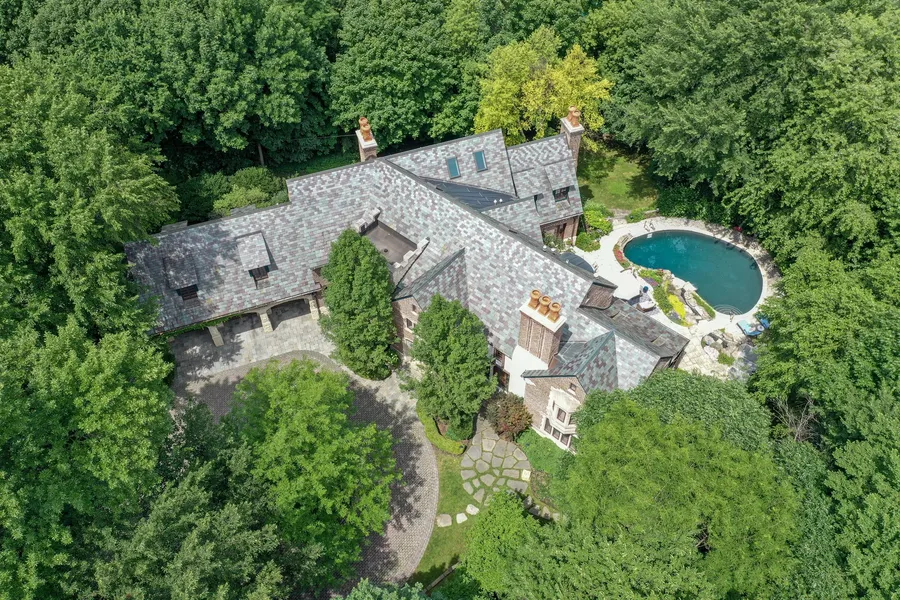 LISTING IS MOVING TO THE PRIVATE NETWORK - DO NOT CONTACT SELLERS. Old World craftsmanship comes alive in this stately brick and stone manor designed and meticulously constructed by Demari Development. From the very first moment you enter the home, you are greeted by rich detailing that simply can't be replicated today: intricate millwork, wood paneling, arched doorways, plaster and coffered ceilings, ancient stone fireplaces and a beautiful blend of hardwood and stone floors. The main level balances classical design and modern amenities with a variety of spaces for both grand entertaining and casual gatherings. The formal living room, dining room, library and family room all overlook the private backyard, with many of these rooms opening to the outdoors. The gourmet kitchen is touched with Wolf appliances, a large center island, dining space, catering/prep room and convenient butler's pantry leading to the dining room. A screened porch, massive laundry room, mudroom and large attached three-car garage complete the main floor. Entertaining can easily move into the finished English basement, where you'll find a second kitchen, full bathroom, exercise room, an ensuite bedroom, rec room, theater room and a potential wine cellar. Up the sweeping front staircase, you'll find the elegant master wing through the double door entry. A cathedral ceiling, stone windows and a stone fireplace add to the sense of romance emanating through the suite which includes a large, private bath featuring a soaking tub, separate steam shower, built-ins, dual vanities and a large dressing room plus a walk-in closet. The other wing consists of four beautifully detailed family bedrooms and three full bathrooms. The private finished third floor offers a sitting room, bedroom and bath. Beyond the interiors, the tranquility of the outdoors awaits in the backyard, where you'll discover a true oasis with a stone terrace, pool, waterfall, BBQ and manicured lawn - all kept serenely private by tall, mature trees. This finely crafted home and property is a one-of-a kind offering with extreme quality and privacy - don't miss the opportunity to experience it for yourself.