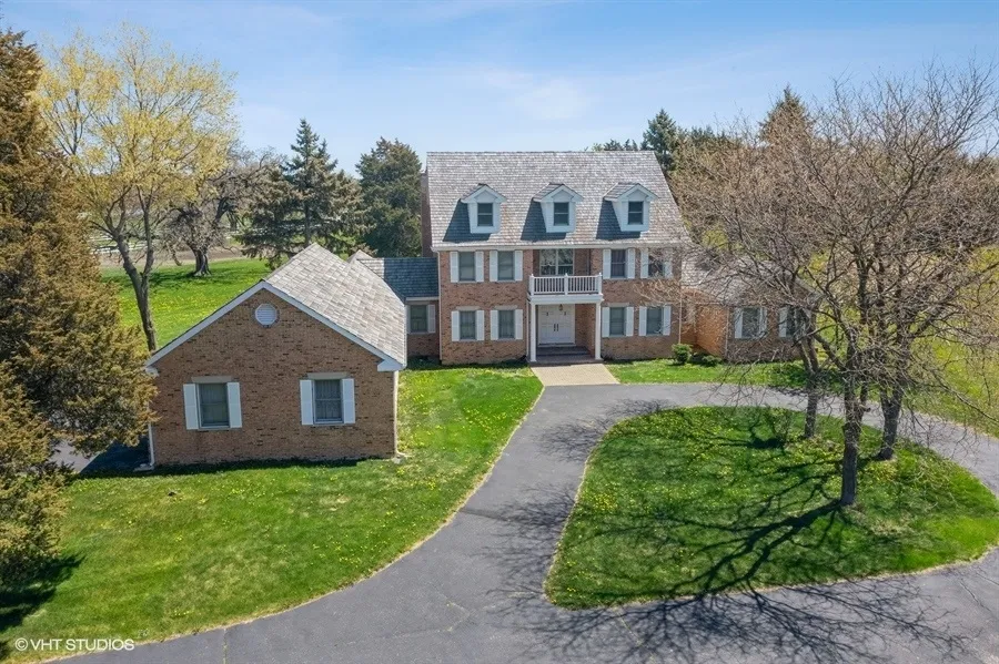 Welcome to this custom quality-built, solid brick home located on 5+ acres surrounded by white picket fencing in Hunt Club Farms. Enter this lovely home via the soaring double-story foyer with oak hardwood. The large living room, separate dining room and family room are perfect for entertaining. They all have atrium doors that lead out to the aggregate terrace and equestrian views. A separate wing has a lovely first-floor grand bedroom suite with gas log fireplace, a walk-in closet, and French doors leading to a quiet garden. The EnSuite bathroom has separate shower; double vanity sinks with raised height; bidet; and a luxurious Kohler jetted-spa bath. This wing also includes an executive office with architecturally built-in oak paneled bookcases. The family room has two-story ceiling with another balcony that overlooks from the upper hallway. It also has a gas fireplace, a built-in wet bar and ceiling fan. The Gourmet kitchen has warm custom cherry cabinetry, a separate eating area plus center island with Dacor gas cooktop and downdraft ventilation; double KitchenAid self-cleaning ovens; KitchenAid dishwasher; refrigerator/freezer; butler-pantry. Laundry room has custom cabinetry, two storage closets, built-in ironing board, trash compactor, laundry sink, washer and dryer and access door to outside. First-floor powder room has Kohler designer series. A gracious curving oak stairway leading up to the 2nd floor with balcony that allows light to filter down onto the main floor. The additional three large bedrooms are on the 2nd floor. Bedroom two has large double closets. A Jack and Jill bath connects bedrooms two and three. The fourth bedroom has an EnSuite bathroom and two large closets. Bedrooms three and four share an exterior balcony that overlooks the beautifully landscaped property. The professionally finished full basement has an in-home office, recreational room with gaming and exercise space, a billiard room, dark room for the photography enthusiast, a bonus storage room and a half-bath. There are four furnaces and four air conditioners to keep you comfortable year-round. The roof was redone in 2017. The association takes care of the landscaping in common areas, security checks several times a day and, most importantly, allows a new owner to build a beautiful cottage or horse barn on their property. For personal Equestrian needs, you have access to the Fields & Fence School of Horsemanship. There is a private fishing pond in the community, a unique Equestrian estate subdivision with riding trails. Open neighborhood streets with little traffic for bicycle riding and leisure walking. This property is conveniently located, less than 5 minutes to shops, expressways and many restaurants. It offers a great opportunity to escape busy daily life and is perfect for those who love equestrian.