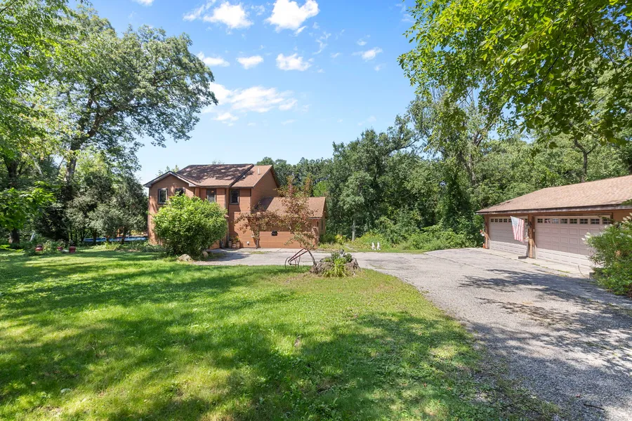 Calling all contractors, home-operated businesses, or car collectors!!! Huge price improvement on this one-owner home that is so close to everything but will make you feel like you are in the Northwoods! This home is PRIVATE! The extra garage is built to stand the test of time with 6-inch walls, 10-inch trusses, 8-foot overhead doors, and plenty of depth for large trucks or to work on vehicles. It can easily be heated and has its own 200-amp service. The attached 2-car garage is 19 x 24 and the detached garage is 30 x 40. Bring your toys, collectibles, or work vehicles! This home lives large with a finished walk-out full basement which includes a bedroom, large recreation area, and full bath. The first floor has a separate living room which could be easily converted into a first-floor bedroom, if needed, or a large home office. The current owners spared no expense when they built this home for themselves. The massive stone fireplace is located in the main level family room has a gas starter and is open to the kitchen with hardwood flooring. The upgraded cabinetry is covered with a large expanse of granite countertops and upgraded stainless steel appliances. The laundry is conveniently located on the main level and there is a half bath with room to expand into a full if needed. Enjoy the screened-in porch for many months and entertain on the massive poolside deck. The primary bedroom is located on the back half of the second level with private views of the tree-lined yard and winter views of Hidden Lake. The master bathroom is extra-large with room for many upgrade options but currently hosts a large separate jacuzzi tub. The front vestibule is perfect for greeting guests. Come enjoy the natural light from the many windows looking out on so so so many trees! This is one of those once-in-a-lifetime opportunities to own a very special piece of tranquility-don't miss your chance! Located just blocks from Old Route 53, you couldn't be closer to shopping, expressways, and restaurants. Stevenson High School! On the map, it is west of W Marden Drive, south of Monitor Lane, and east of Hidden Valley Drive. Don't blink or you will miss this almost-hidden driveway!!! Floor plans are attached along with the photos.
