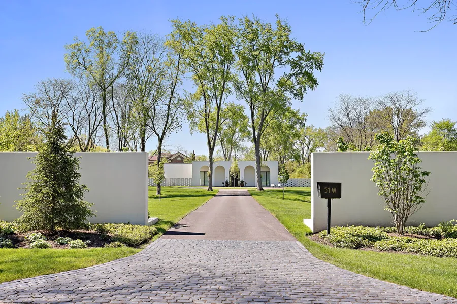 Tucked away on a prestigious road in Lake Forest lies this meticulously reimagined Mid-Century Modern masterpiece. A private, 2.47-acre verdant setting provides an inspiring backdrop for the visionary creation of an designer-owner with a discerning eye for vintage detail and contemporary design. The original 1972 ranch-style residence was completely rebuilt and transformed into a bespoke residence befitting of our modern age. Sweeping lawns, revamped pool, vast entertaining areas, a two-car heated garage with gym, new landscaping and trees enhance the landscape. Unobstructed views of the Onwentsia Club fireworks offer a delightful spectacle in July. Curated from inside out, the transformation included the installation of all-new Pella doors and sliding doors, three custom skylights, a new HVAC system with radiant floor heating, and polished concrete flooring, custom window treatments, new plumbing and electrical wiring, a Lutron lighting system, invisible can lighting, hidden speakers, solid wood doors, noise-canceling insulation, an alarm system, and upgraded smoke/fire/carbon monoxide detectors. Every detail has been handpicked for historic accuracy. The seamless integration of vintage designer lighting, custom walnut millwork, Calcutta marble, custom walnut vanities, thoughtful built-ins, hidden storage, and hand-made artisanal tile throughout imbue each space with a timeless mid-century modern aesthetic. Clean lines, expansive floor-to-ceiling windows, and a play on light and space define the interior, creating a sense of openness, serenity, and connection to the outdoors. The chef's kitchen is a statement with Calcutta Viola marble, solid walnut cabinetry and millwork crafted locally in Chicago, plus top-of-the-line appliances and hidden storage. The striking primary suite is a true sanctuary with private access to the garden, a large walk-in closet and spa-like bath retreat with luxurious finishes, a white Bluestone soaking tub and skylight. This exceptional property is a canvas for visionary design, meticulous craftsmanship, and unparalleled privacy in a coveted Lake Forest setting.