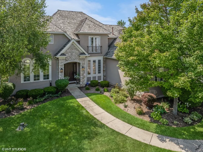 Welcome to this stunning French Provincial estate, a masterpiece of stone and stucco elegance nestled on a lush, private premium lot. This home is a true showstopper, reminiscent of the pages of Architectural Digest. It's a MUST see home with so many updates and upgrades, it takes your breath away! As you make your way to the entrance, you know you're in for a magical experience! The arched, stone-alcove entry with an impressive wood door with sidelights sets the tone perfectly for all the delights that await you inside. Upon entering the home the 1st thing you'll notice is the expansiveness of two-story foyer, the yummy dark chocolate hardwood floors, and the elegant dual staircase with the same dark chocolate railings, & wrought iron spindle accents. Then as you gaze upon the upper level catwalk, you'll practically gasp a the opulence of crystal chandelier (it's motorized for easy maintanence). With a 1st impression this striking, you be excited to explore and uncovering every exceptional feature in this home. To the left of the staircase is the formal living room which is bathed in natural light from three oversized windows with half-round arches that offer a picturesque view of the front of this beautiful estate. To the right, the formal dining room is a host's dream, featuring gorgeous wainscoting and an exquisite crystal chandelier, creating ambiance perfect for elegant dinner parties. The expansive family room is truly the heart of the home, designed for comfort and gatherings. Here, you can relax by gas fireplace the marble & high gloss white painted mantle which features new ceramic logs with remote control for effortless enjoyment. From there, you can retreat through the sliding door to serene outdoor space which features a brand new remodeled deck, a custom pergola with lighting and shades & a pergola enclosure for the main 48" SS Weber gas BBQ grill + dual gas line feeds for add'l grills...WOW! Situated within the family room space is a conversation area, complete with an amazing wine bar and custom built-in cabinetry, invites you to unwind in style. The gourmet kitchen is a chef's dream, & remodeled to the nines with beautiful, quartz countertops, an expansive island perfect for hors d'oeuvres buffets when entertaining guests, plus it features a SS prep sink and Insinkerator disposal & another stunning crystal and wrought iron chandy. Next to the island is the sunny breakfast nook, that overlooks the rear acreage. There's an additional SS sink for easy meal clean-up, and all top-of-the-line SS appliances, including a Wolf Commercial Grade 36" range, with a stainless steel 700 CFM hood, a Viking Commercial Grade Microwave, and a double door, Samsung French Door Refrigerator. There are an abundance resurfaced/painted crisp white cabinetry that now have stainless steel pull-out shelving trays to add both style and function to this culinary haven. Completing this floor is a bedroom, with full bath and walk-in closet, which could make a great in-law, nanny, or guest suite. Lastly, is the laundry/mud room with Samsung washer/dry, utility cabinets. Oh, and it leads to the massive 3 car sideload garage with epoxy floors, gas 80k btu heater and attic with add'l insulation. Going up! At the top of the stairs, is a large walk-in storage closet with access to the attic space. Next is the romantic, primary suite with tray ceilings, a gas fireplace with ceramic logs & remote control, a luxury bath boasting a granite double vanity, whirlpool tub, a walk in shower commode room plus a to die for walk-in closet with closet storage organizers! Just off this room, is the 2nd bedroom perfect for a nursery, sitting room or office! Two more spacious bedrooms and a full updated bath complete this level. Oh, yes! A finished basement rec space with home gym area, stationary door wine cellar, storage & 1/2 bath. See add'l info tab for all the extra features this gorgeous residence offers. See it today!