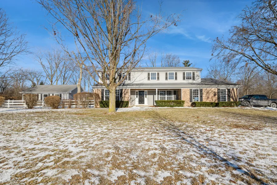 Beautiful corner, wooded lot with white fence & gate at front landscape. Charming, traditional home located in central Lake Forest. Easy access to highway 41 and tollway. Separate 2-4 car garage has windows & shutters - could be studio or storage. Inviting large foyer leads to sunny living room with hardwood floors & accent fireplace. Family room has wide planked pegged hardwood floors, wet bar, built in cabinets & shelving around brick wood burning fireplace. Sliding doors open to patio & yard. Kitchen includes eating area, hardwood floors, white cabinetry, center island, granite counters & stainless steel appliances. 1st floor laundry/mudroom is transitional to 2 car attached garage. 2nd floor has hardwood under all carpet. Extra large expanded master bedroom offers an adjoining sitting room/office. Large unfinished, easily accessed basement. Short drive to schools, downtown Lake For...