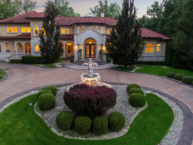 Welcome to an unparalleled masterpiece of elegance and craftsmanship. Custom-built in 2009, this one-of-a-kind residence is an epitome of luxury and sophistication, featuring all imported Italian stone and bespoke European furnishings. From the moment you step through the grand entrance, you are enveloped in an ambiance of opulence and refinement. Upon entering this architectural gem, you are greeted by a breathtaking 3-story foyer crowned with a magnificent cupola that evokes the grandeur of a five-star resort. The main level showcases heated onyx flooring in every room, bordered by inlaid brass and rare Persian green marble, adding an extra layer of warmth and luxury to the space. The attention to detail extends to the French faucets and custom-crafted metal railings and doors, enhancing the villa's refined aesthetic. The great room is a true highlight, offering a seamless transition through French doors to the rear of the home. Step outside to discover a magazine-worthy palatial swimming pool and cascading fountains, surrounded by large tree planters that provide a serene oasis for relaxation. This outdoor oasis is designed for both relaxation and entertaining, providing a lush escape right in your backyard. Spanning 5,646 square feet across the two above-grade floors, this home includes a lavish primary suite conveniently located on the first floor. The suite offers both privacy and comfort, while the second floor features four additional bedrooms, each with enchanting views of the pool and fountains. A spacious family room completes this level, perfect for gathering with loved ones. The 3,845 square feet of below-grade living space matches the exquisite finishes found throughout the home, including limestone and marble. This lower level is a hub of leisure and entertainment, boasting a state-of-the-art gym, sport court, billiards room, entertainment area, and a full bathroom. Constructed with reinforced concrete, this residence is built to stand the test of time. The hand-selected materials from Europe exemplify the highest standards of bespoke craftsmanship, ensuring durability and unmatched elegance. Completing this extraordinary property is a two-story coach house, offering a fully private and separate space that could serve as an exquisite guest house or an ideal retreat. This luxury home stands as a testament to refined living and exceptional design. Experience the height of elegance and sophistication-schedule your private viewing today.