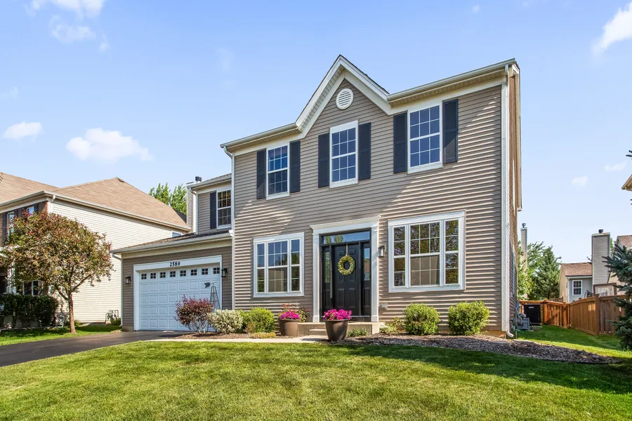 Ready to trade the city hustle for room to breathe? Located in the desirable Liberty Lakes community, this bright, open-concept 2-story home has every appointment and space to grow. The welcoming two-story entry opens to a sun-filled living/dining space and a private office with French doors - perfect for working from home or studying. The heart of the home is the beautifully updated 2024 kitchen with quartz countertops, luxury vinyl plank floors, stainless-steel appliances, a walk-in pantry, and a big island where everyone can gather. It flows right into a spacious family room with a cozy fireplace - ideal for game nights, movie marathons or curling up with a good book. The laundry/mudroom (updated in 2025) makes everyday life easier with extra storage, a mud sink, and a newer washer/dryer (2022). The entire 2nd level features brand-new carpeting (Dec 2024), a primary bedroom with vaulted ceiling and WIC, large loft, and three additional bedrooms. New interior lighting (Dec 2024) throughout the home, and all bathrooms, refreshed with new flooring and vanity tops, give the home a clean, modern feel. Outside, the fenced backyard is perfect for entertaining with summer barbecues on the expansive patio, or for enjoying conversations with friends while roasting marshmallows around the firepit. The newly finished basement (2023), with new carpeting on the stairs (Dec 2024), adds a half bath with space for a shower, giving you extra room for a play area, home gym, or guest space. Recent upgrades like a brand-new furnace and A/C (Aug 2025), new front door, and Ring doorbell bring peace of mind. Best of all, you’re steps from the 33-mile Millennium Trail - perfect for bike rides, nature walks, cross-country skiing and exploring Lake County’s outdoor beauty.