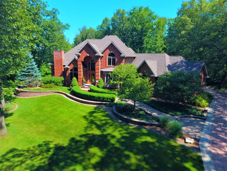 Brilliant craftsmanship sets this custom 6,000 Sq Ft 1.5 Story apart! Some highlights incl... a scenic 344' tree lined drive leads to a Georgia Clay stamped driveway & meticulous landscape. Striking Quoined brick exterior greets your grand foyer entry. Great abundance of natural light thanks to oversized Andersen-Transom Windows throughout, hrwd flrs, 4 3/4 trim, arched halls w/stately Tuscan columns. Coveted Decker lighting, Gathering Rm F/P w/encased mantels, ornately designed Chef's kitchen by Gregory, custom maple glazed Amish cabinetry, Granite Counters w/Grohe fixtures. Mstr Bd Sitting Rm, Amish painted marble F/P, Euro Italian Mstr bath, Grohe fixtures, Italian tiled Bubble tub & Dbl Marble sinks. Enormous 2,300 Sq ft Bsmt, 9'ceilings to do as you wish, 73 Gal Wtr Htr, Exercise Rm, Roughed in 5th bath, 5,500 WT 9Hp Gen & 36'x24'Pole Barn... A MUST SEE