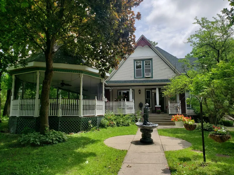 BEAUTIFUL VICTORIAN HOME READY TO MOVE IN! Owner just addedd central air and heat! All Brand New!4 BEDROOMS, 2- 3/4 BATHS, THE LARGE COUNTRY KITCHEN FEATURES NEWER CHERRY CABINETRY, APPLIANCES STAY, CERAMIC FLOORING WITH ORIGINAL WOOD IN DINING AREA AND A FIREPLACE, TWO DOUBLE DOOR PATIO DOORS LEAD TO A MASSIVE SCREENED IN COVERED DECK AND GAZEBO, SCREENED IN FROM UNDERNEATH ALSO. PLUS A LARGE SUN DECK.IS ACROSS THE BACK OF HOUSE. FORMAL DINING ROOM WITH ORIGINAL CHANDELIER, PARLOR, LIVING ROOM AND HALF BATH COMPLETE THE MAIN LEVEL. THICK CUSTOM WOODWORK THROUGHOUT, TRANSIT WINDOWS ABOVE THE ORIGINAL SOLID WOOD DOORS, A FRONT AND BACK STAIRCASE TO THE UPPER LEVEL. CURVED GLASS WINDOWS. 4 BEDROOMS, A FULL BATH AND THE OFFICE/LIBRARY WITH BUILT IN BOOKCASES, ALL BEDROOMS HAVE WALK-IN CLOSETS. ALMOST A 25,000 SF LOT WITH FLOWERING BUSHES, TREES AND LOTS OF SHADE. NEWER:ROOF, WINDOWS, BOILER, CHIMNEY TUCK POINT. A MUST SEE! THE HUGE BASEMENT IS UNFINISHED BUT HAS A PARTIAL BATH! 3RD