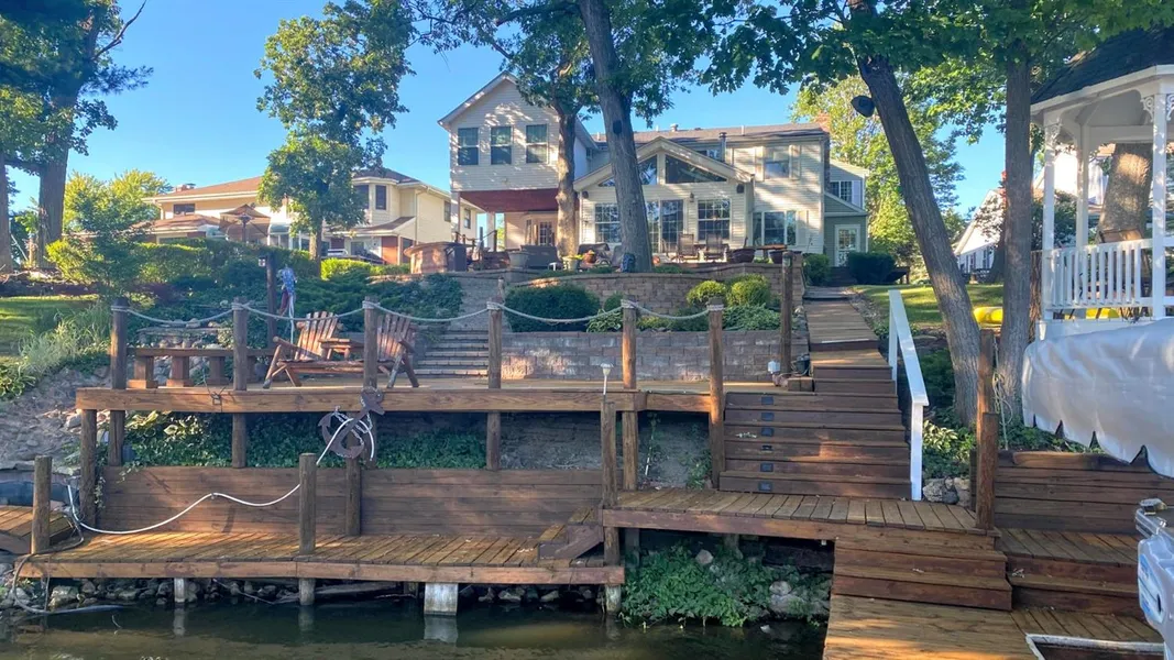 Rare find! Beautiful open concept LAKEFRONT home with 6 bedrooms and 6 1/2 baths on Lake Holiday in the Gated LOFS community less than a hour commute to the city. Updated home with well appointed kitchen with Big curved island, big bright Rec room with skylights and big windows open to great lake views. Plenty of room with 6 Big bedrooms 4 with en suites, Living area/game room, huge basement with Theater area, gym, sauna. It doesn't stop there, step out to the serene setting with stunning lakefront views. Ready to entertain with multi-level decks, patios, bar top with built in grill, gas fire pit, gazebo and a waterfall. Loads of room for toys by the large dock area and lakefront walkway for parking for 5 boats. Located in resort style community with 4 lakes, boating, fishing, beaches, parks,18 hole golf course, pro shop, 2 restaurants and summer concerts on the lawn! Oversized 4.5 car g...