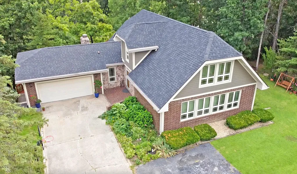 This joyous 4200 square foot home on the LAKE is a rare find! Unique custom layout with a MAIN FLOOR BEDROOM.Full of charm, this two-story with a walkout basement, has a great room with cathedral ceilings and exposed wood beams. The kitchen has all new appliances, high quality cabinetry, granite counter tops, and open to a dinette with beautiful views. An extra living area is cozy with a fireplace and lake views just outside on the deck. Upstairs has 2 bedrooms and large loft area overlooking the great room. The walkout basement offers an open concept with the 3rd bathroom.The roof is less than a year old, there are newer tinted low E grade glass triple pane windows and hardy plank siding, all contributing to the energy efficiency of this home. Off the back deck you will find a custom gazebo, so many gorgeous Lake views you will absolutly enjoy all year round. 2 sheds, and an attached 2 car garage. tucked away in nature but still close to shopping, parks, and great schools. Low Taxes.