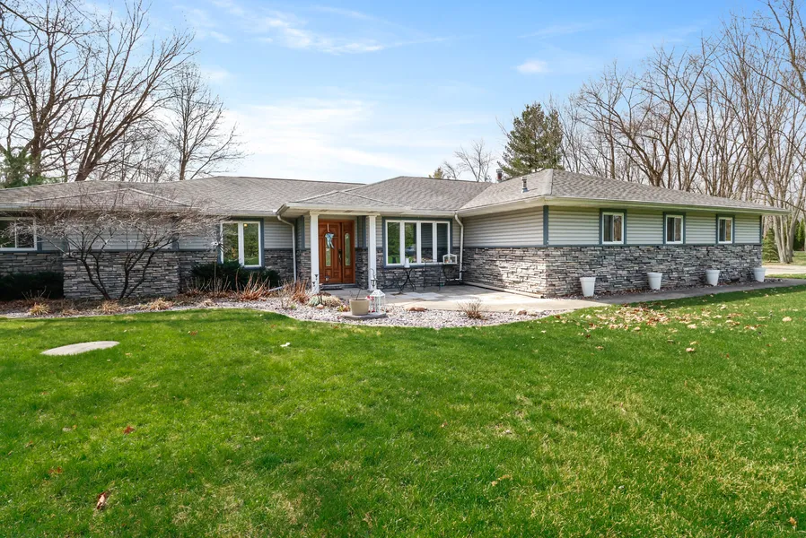 Secluded Serenity Meets Spacious Living! Discover this custom-built, steel-frame 5-bedroom ranch boasting over 3,000 sq ft of thoughtfully designed living space, tucked away on nearly 5 private acres. Enjoy peace of mind with radiant floor heating (4 zones), forced air, central A/C, and a whole-home generator. The expansive layout includes a huge kitchen with walk-in pantry, formal dining, large den, open living room, and dedicated home office. The primary suite impresses with new carpet, a remodeled shower, and custom Elfa walk-in closet. Bedrooms all feature walk-in closets and new flooring throughout. Step outside to a backyard oasis: hot tub, gas fire pit, patio with gas hookup, and tranquil trails for walking or 4-wheelers. Bonus features include an extra-deep 2.5-car garage with no-step entry, and a massive pole barn with space for a gym, workshop, or office. This home is the perfe...